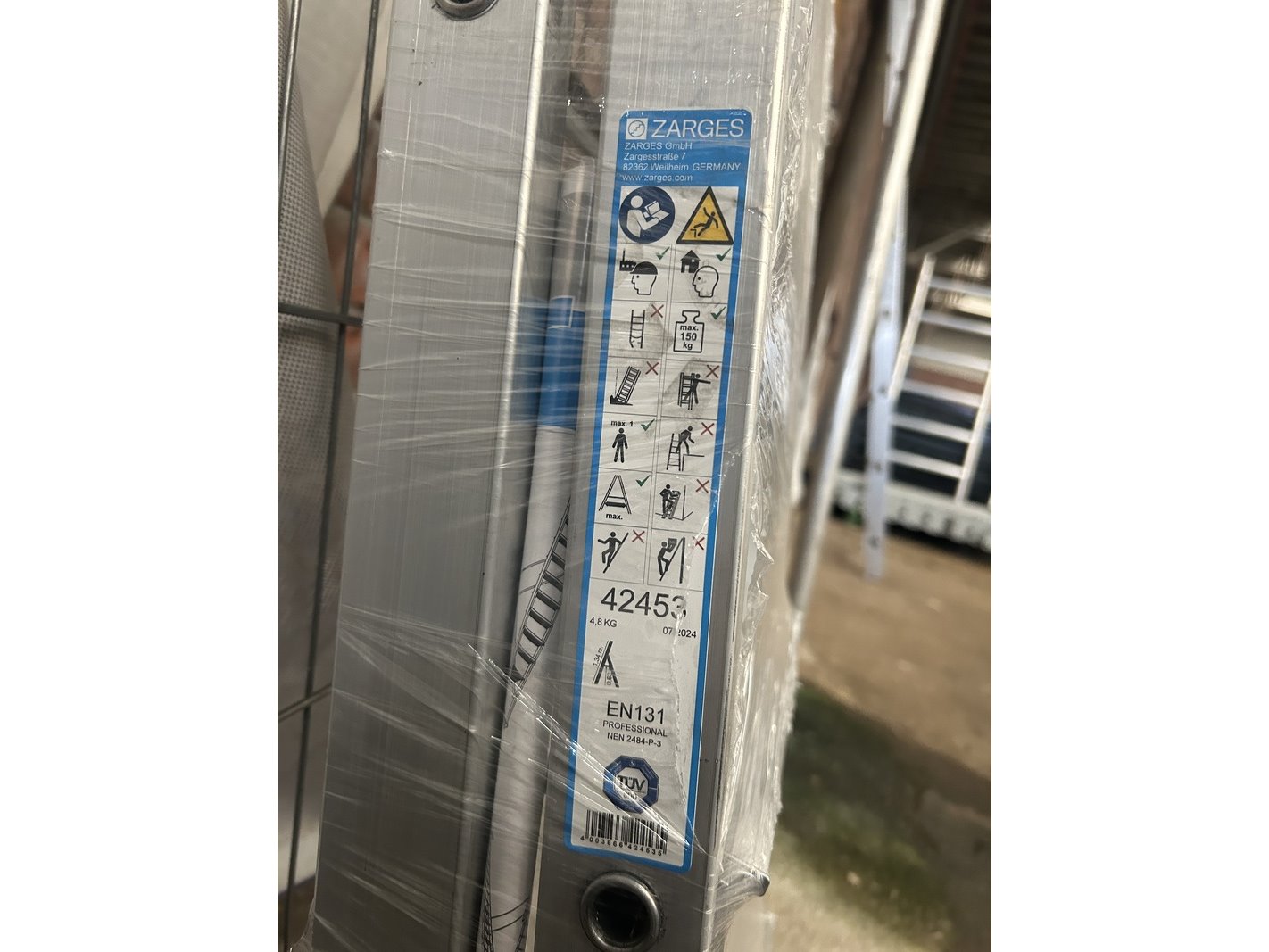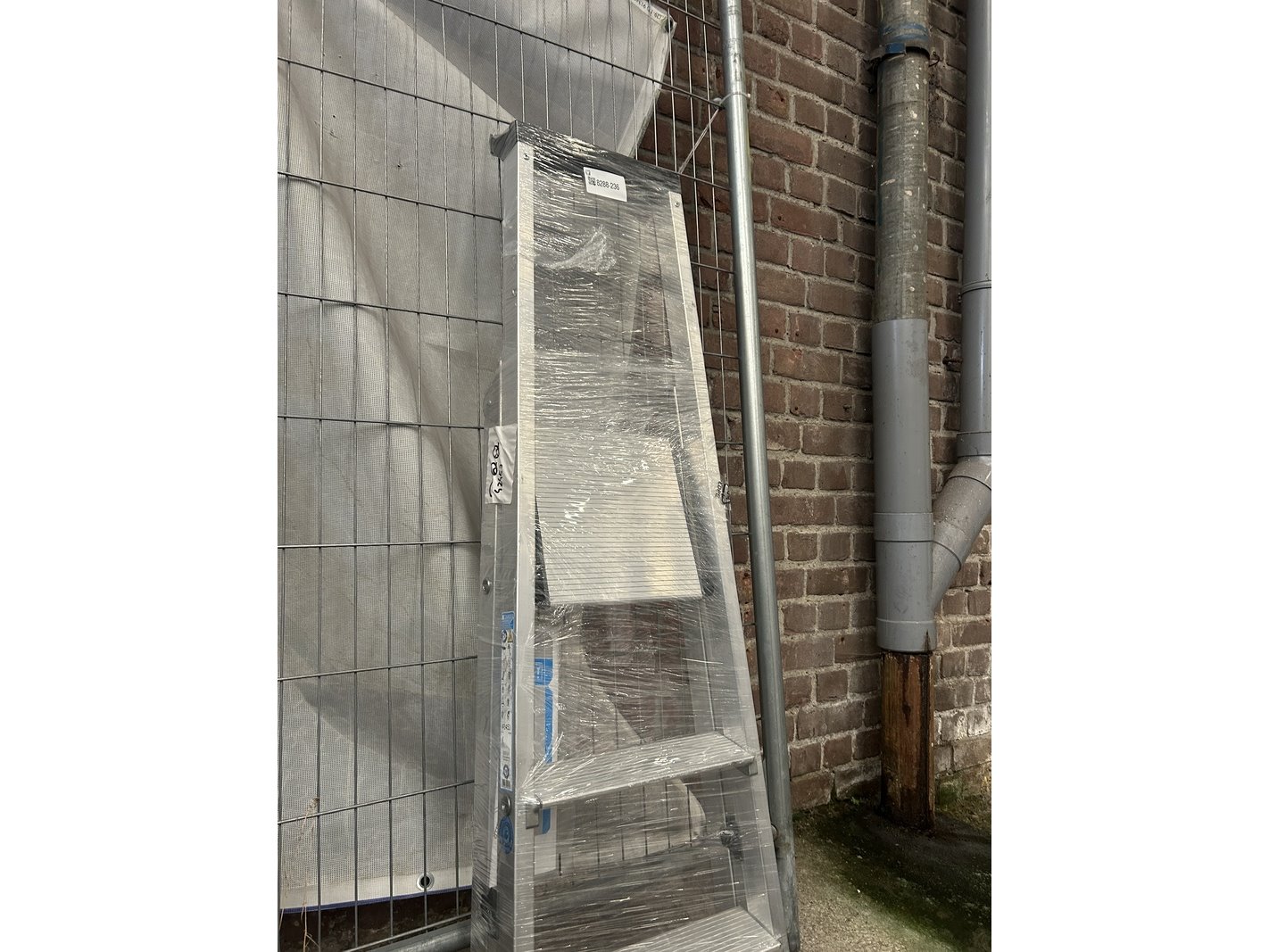 Merk: Zarges Product: Huishoudtrap/geribbelde staande sportladder 3 treden Specificaties: Showroom model. Aantal treden incl. platform 3 Buitenmaat 0.42 m Werkhoogte 2.6 m Ladderlengte 1.34 m Platformhoogte 0.61 m Materiaal Aluminium Aantal treden 3