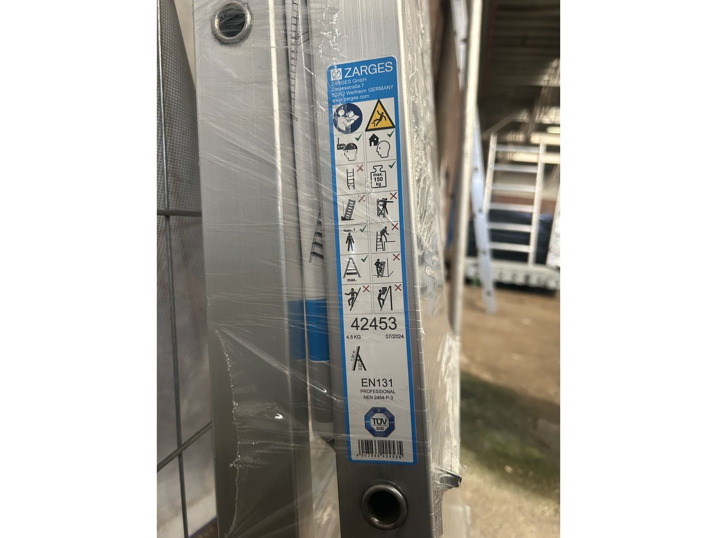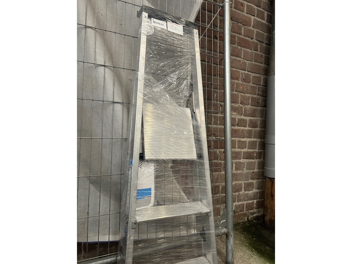 Merk: Zarges Product: Huishoudtrap/geribbelde staande sportladder 3 treden Specificaties: Showroom model. Aantal treden incl. platform 3 Buitenmaat 0.42 m Werkhoogte 2.6 m Ladderlengte 1.34 m Platformhoogte 0.61 m Materiaal Aluminium Aantal treden 3