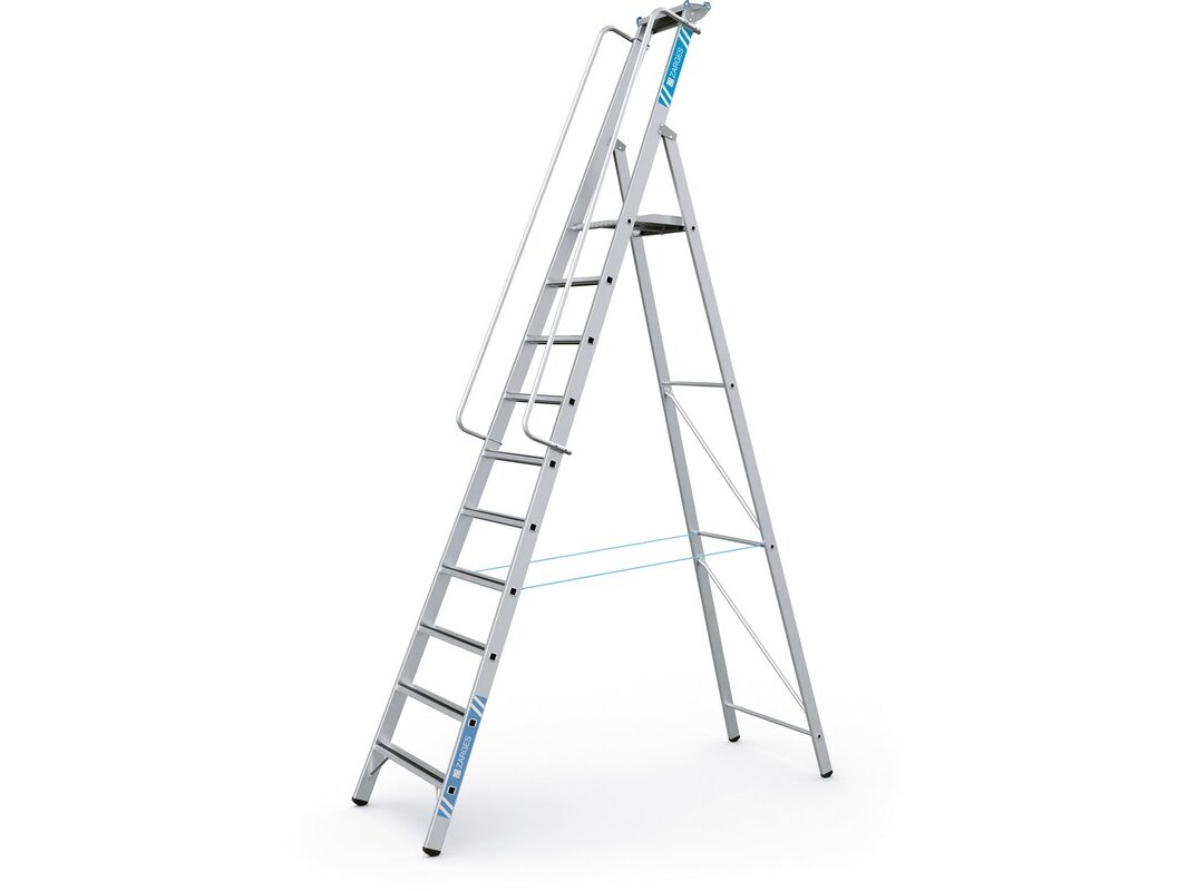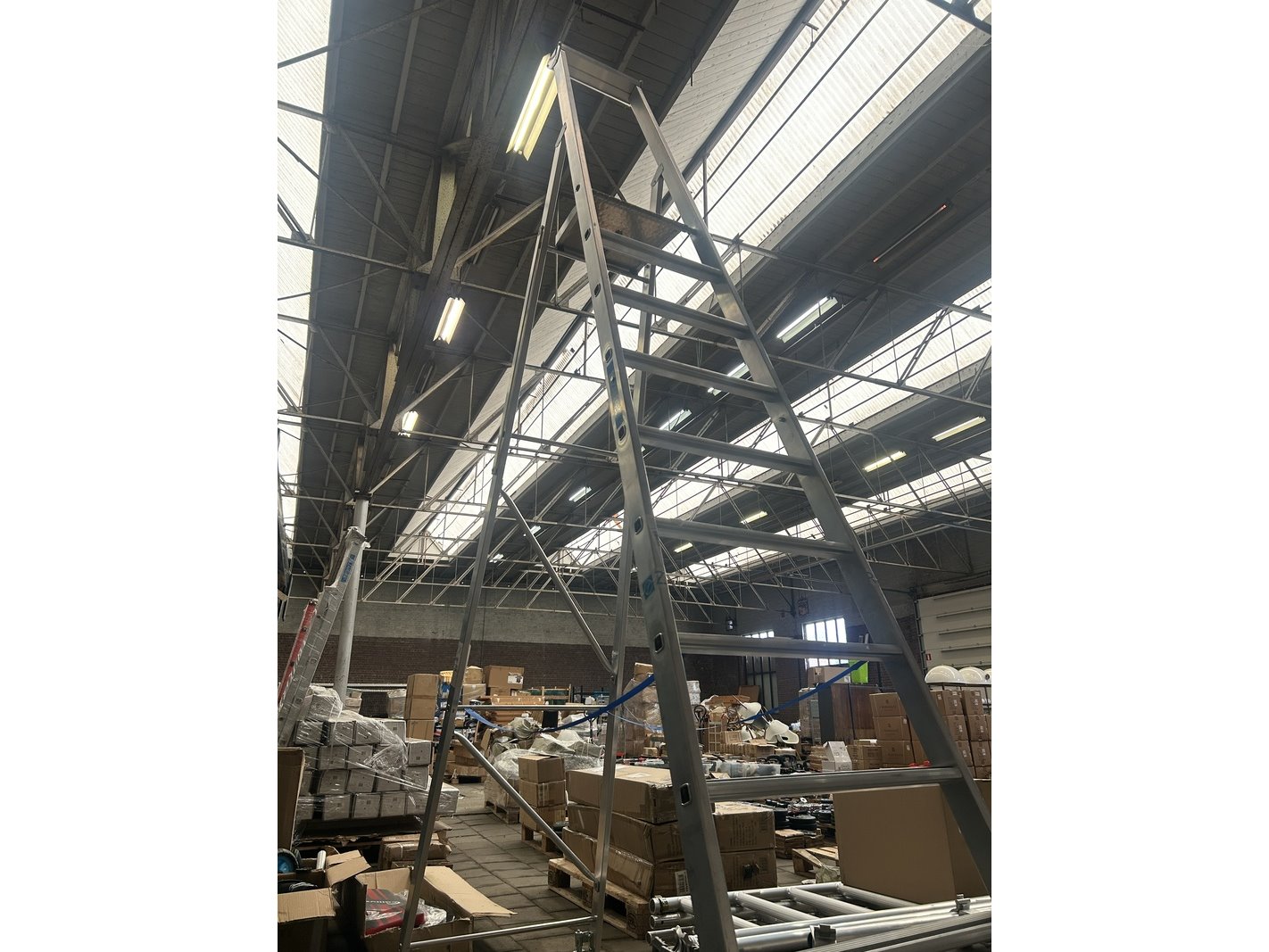 Merk: Zarges Product: Geribbelde staande sportladder met starre verbinding 10 treden verrijdbaar Specificaties: Showroom model. Meer informatie Producttype Geribbelde staande sportladder Spreidstandbeveiliging Perlon banden Aflegbak Aluminium Coating naturel Schroefverbinding tussen sporten/treden en koker gefelst Type sporten/treden Safer Step Sporten-/tredenafstand verticaal 265 mm Diepte treden 80 mm Transportafmetingen ca. 3.880 mm × 800 mm × 155 mm Kokermaat stijg- /steundeel 73mm / 58mm Normen EN 131 professional Gewicht 20.3 kg Kokermaat 73 mm Grondoppervlakte 2,11 m × 0,8 m Kokermaat 58 mm Platformbreedte 390 mm Platformlengte 380 mm Belasting max. 150 kg loodrechte ladderhoogte 3.59 m Aantal treden incl. platform 10 Buitenmaat 0.8 m Werkhoogte 4.6 m Ladderlengte 3.88 m Platformhoogte 2.59 m Materiaal Aluminium Aantal treden 10