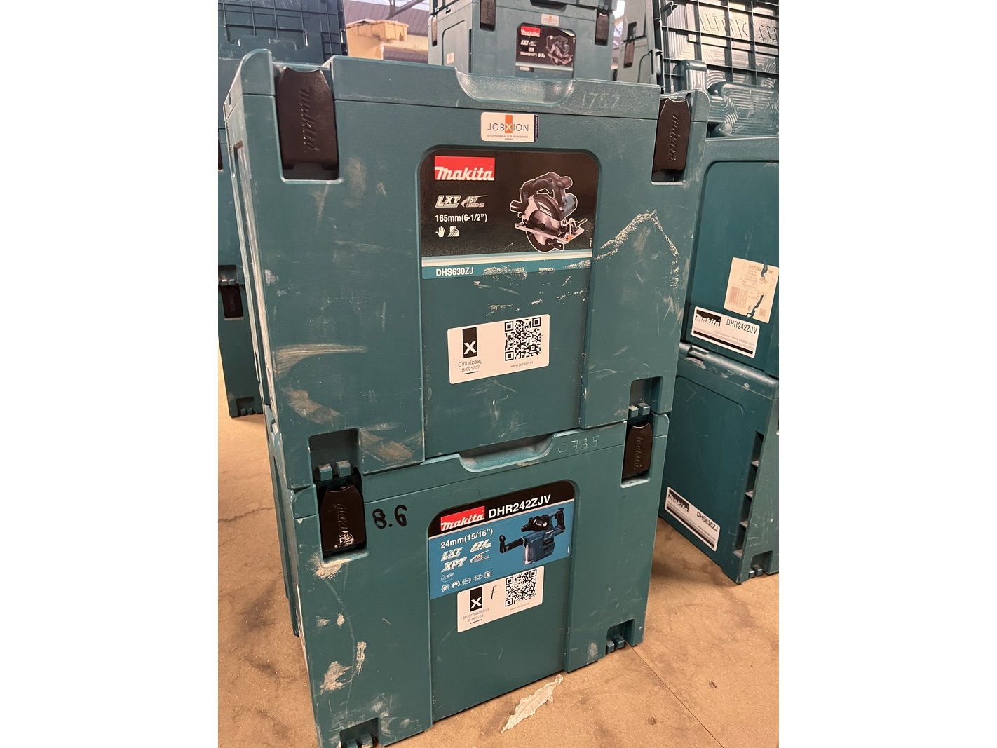 2x bouwgereedschap in m-box (1x cirkelzaag, 1x combihamer) makita, 1x dhs630zj, 1x dhr242zjv