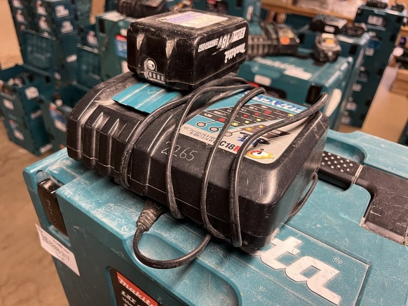 Merk: Makita Product: Bouwgereedschap, 1x 18V accu, 1x lader, M-boxen Conditie: gebruikt Specificaties: Inhoud kavel: 2x DJV182ZJ, 1x DHS630ZJ, 1x DHR242ZJV, 2x DDF484ZJ, 1x 18V accu, 1x lader De machines zijn afkomstig van een professioneel bouwbedrijf waar ze jaarlijks zijn gekeurd en goed onderhouden. Alle machines zijn functioneel getest en werken naar behoren, maar vertonen gebruikssporen zoals krassen, stootplekken en stofresten die passen bij intensief gebruik op de bouw. Deze kavels zijn ideaal voor vaklieden, aannemers of handige doe-het-zelvers die op zoek zijn naar betrouwbaar Makita-gereedschap voor een scherpe prijs.