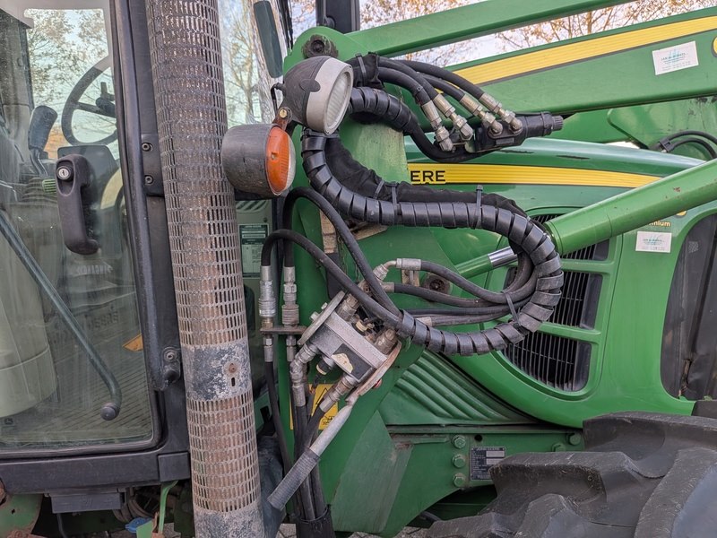 Merk: JOHN DEERE Product: Land- of bosbouwtrekker met voorlader en grondbak BouwJaar: 2007 Conditie: Gebruikt Specificaties: Basiskenmerken Kenteken: TKF-64-X Datum eerste toelating: 30 juni 2007 Afgelezen tellerstand: 12.603 u. Brandstof: Diesel Motor & Prestaties Max. vermogen: 75 kW Aantal versnellingen: 24/24 Max. rijsnelheid: 40 km/u Voorlader Merk: JOHN DEERE Type: 633/-/- Serienummer: *CC0633X074191* Bouwjaar: 2007 Max. gewicht: 560 kg