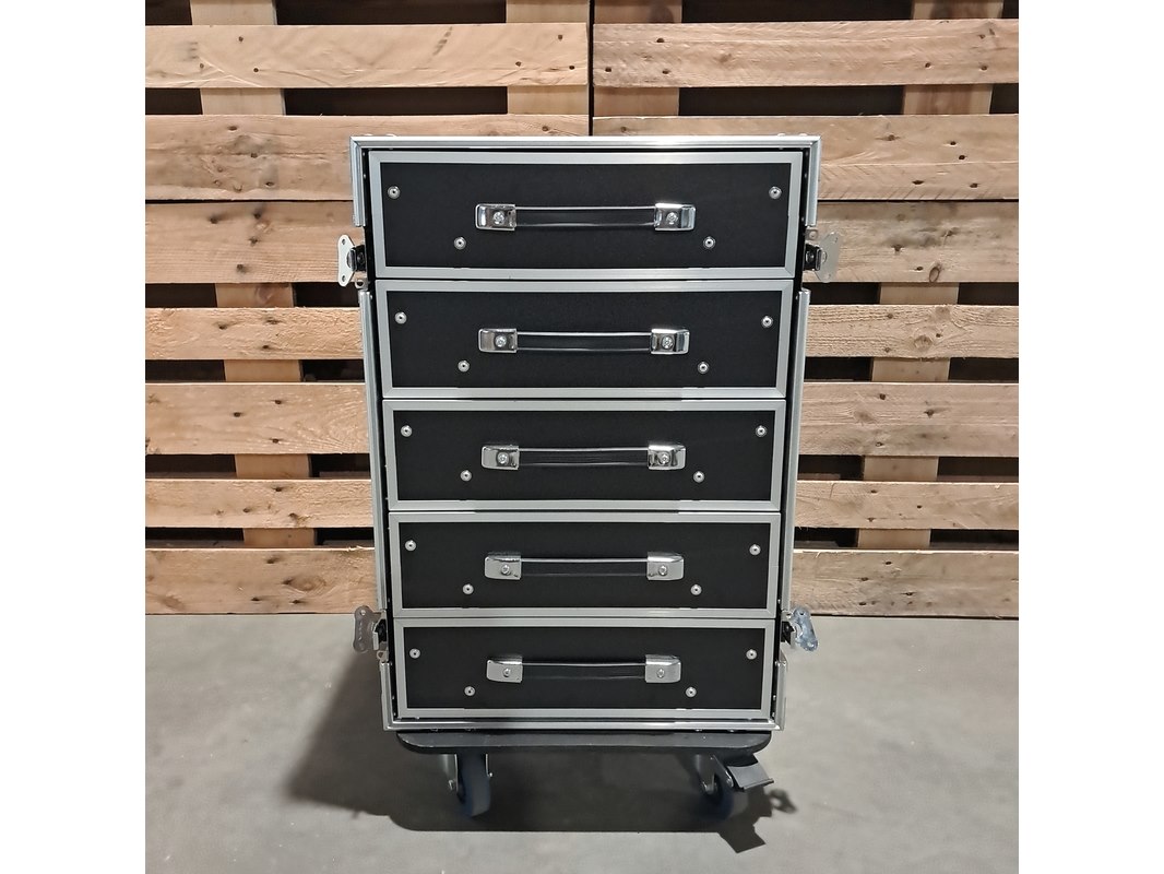 Merk: Power Dynamics Product: 5-laden flightcase Afmeting: Totale afmeting (HxBxD): 870 x 525 x 595 mm Specificaties: Maten & Gewichten Afmetingen per stuk: 870 x 525 x 595 mm (HxBxD) Voorzien van: • 5x laden met schuimbekleding, 430 x 430 x 90 mm • 4x vlinderslot • 4x zwenkwiel (waarvan 2x geremd) , 85 mm • Voorpaneel met uitklapbare tafelpoot (kan dienen als werkblad en tafel)
