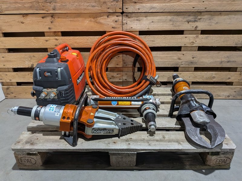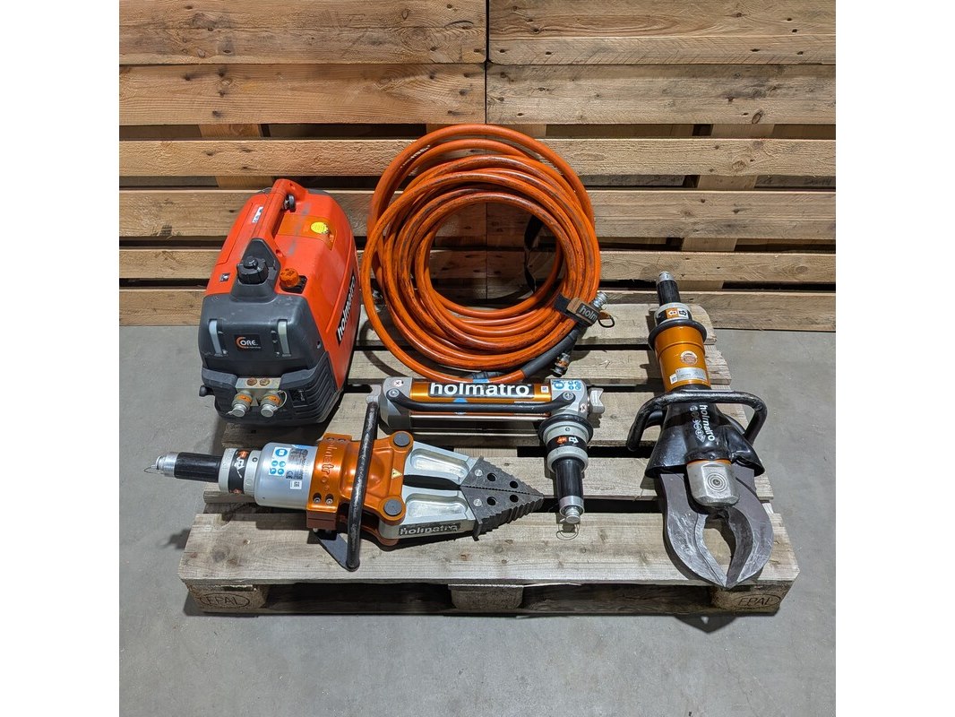 Merk: Holmatro Product: Set hydraulisch redgereedschap Conditie: Gebruikt Specificaties: Duopompgroep Model: DPU 31 PC Bouwjaar: 2014 Gewicht: 24,9 kg Serienummer: 1237201HH Hydraulische spreider Model: SP3230+ Bouwjaar: 2003 Serienummer: 102851 Hydraulische telescoopram Model: TR 4350 C Bouwjaar: 2013 Serienummer: 1197669HH Hydraulische schaar Model: CU 4050C NCT II Bouwjaar: 2008 Serienummer: 186887 Inclusief • 2x hydrauliekslang