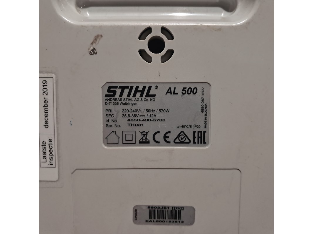 Merk: STIHL Product: Ruggedragen Lithium-ionaccu Conditie: Gebruikt Specificaties: Technische gegevens Nom. spanning: 36 V Nom. capaciteit: 43.80 AH (volgens IEC 61960) Nom. capaciteit cel: 5 AH (volgens opgave fabrikant) Aantal leds: 6 Gewicht: ca. 9,5 kg Inclusief • 2x draagsysteem AR L • 2x aansluitkabel voor AR L accu's • 2x AP adapter AD 100 • 2x snellader, STIHL AL 500