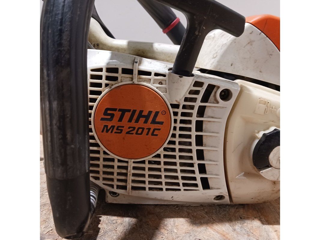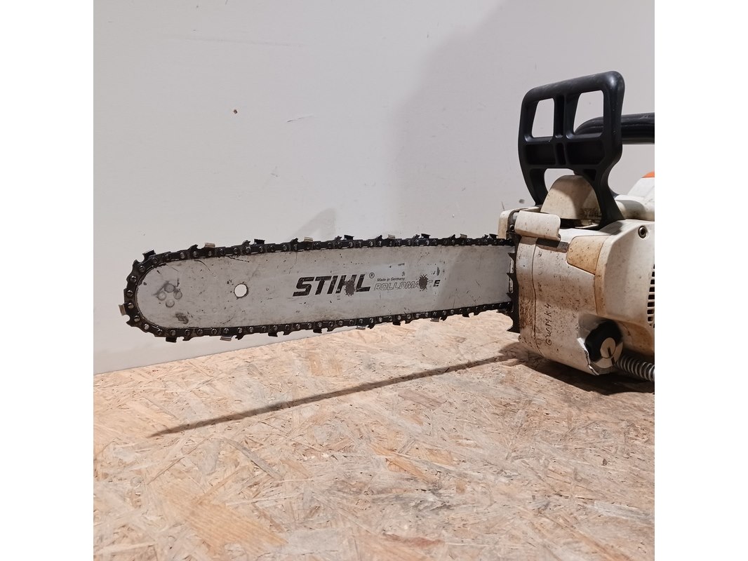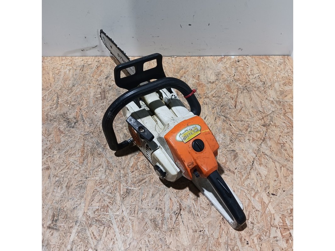 Merk: STIHL Product: Benzine kettingzaag Afmeting: Lengte zaagblad: ca. 340 mm Conditie: Gebruikt Specificaties:
