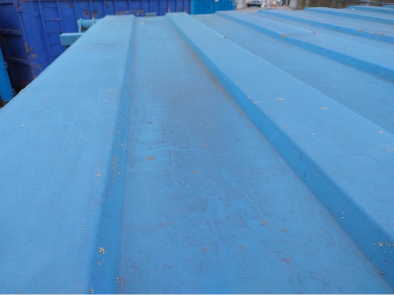 Merk: KTK Product: (Locatie Soest) ca. 30 m³ Deksel container - afzetcontainer haakarm hydraulisch Kleur: Blauw Afmeting: Circa 650 x 250 x 185cm (l x b x h) Conditie: Gebruikt Specificaties: Openslaande deuren