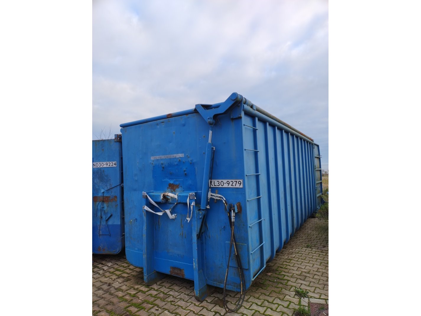 Product: (Locatie Soest) ca. 30 m³ Deksel container - afzetcontainer haakarm hydraulisch Kleur: bLAUW Afmeting: Circa 650 x 250 x 185cm (l x b x h) Conditie: Gebruikt Specificaties: Openslaande deuren
