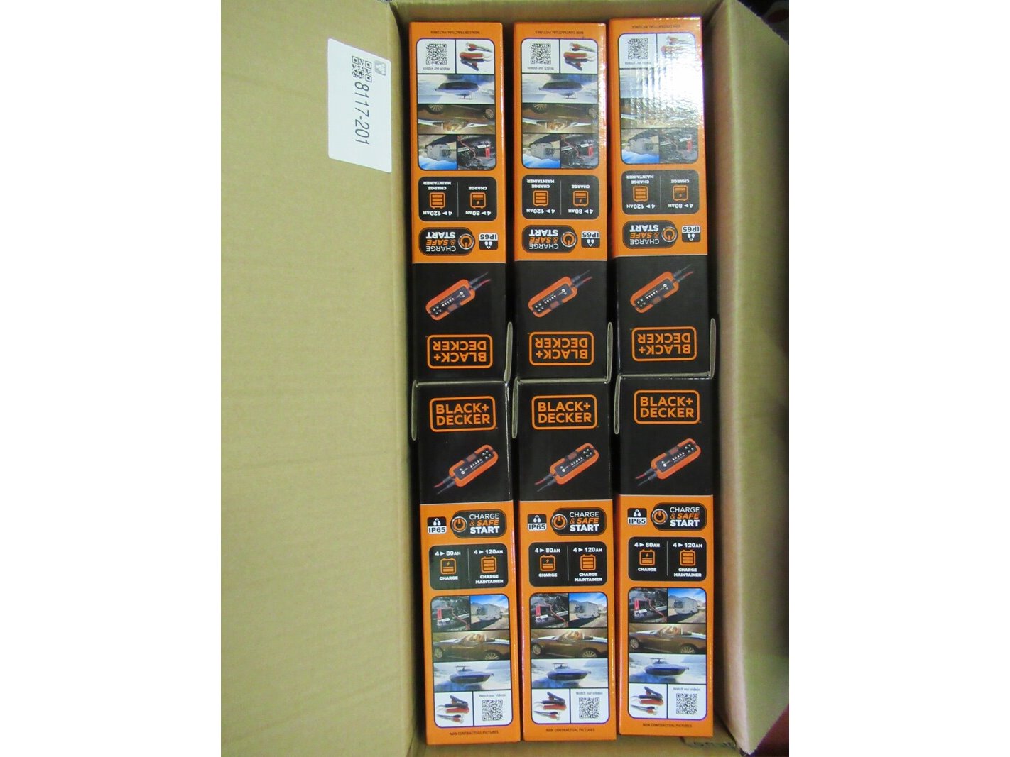 Merk: Black & Decker Product: Acculader Conditie: nieuw Specificaties: 6/12 Volt, batterijcapaciteit 120 AH.