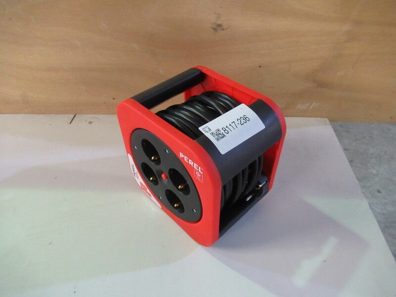 Merk: Perel Product: Kabelhaspel Afmeting: 10 meter Conditie: nieuw Specificaties: v.v.4 stopcontacten, 3x1,5 kabeldikte
