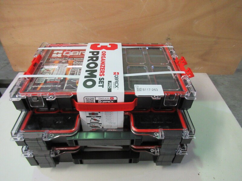 Merk: Qbrick Product: 3-delig organizerset Afmeting: 450x322x240mm Conditie: nieuw Specificaties: onderste 2 orginizers v.v. uitneembare bakjes