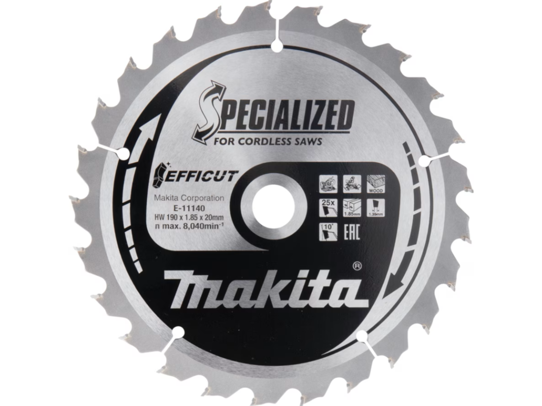 Merk: Makita Product: Widia zaagblad Afmeting: 190x20 mm Conditie: nieuw Specificaties: 25 T