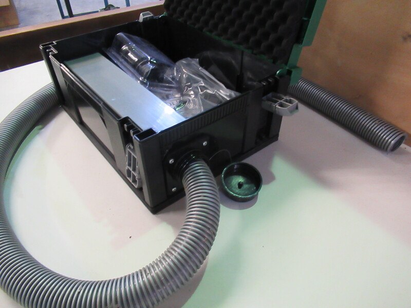 Merk: Hitachi Product: Haakse Slijper Afzuiging Afmeting: 125 mm Conditie: nieuw Specificaties: stofafzuiging voor haakse slijper, incl. kap/slang/opvang