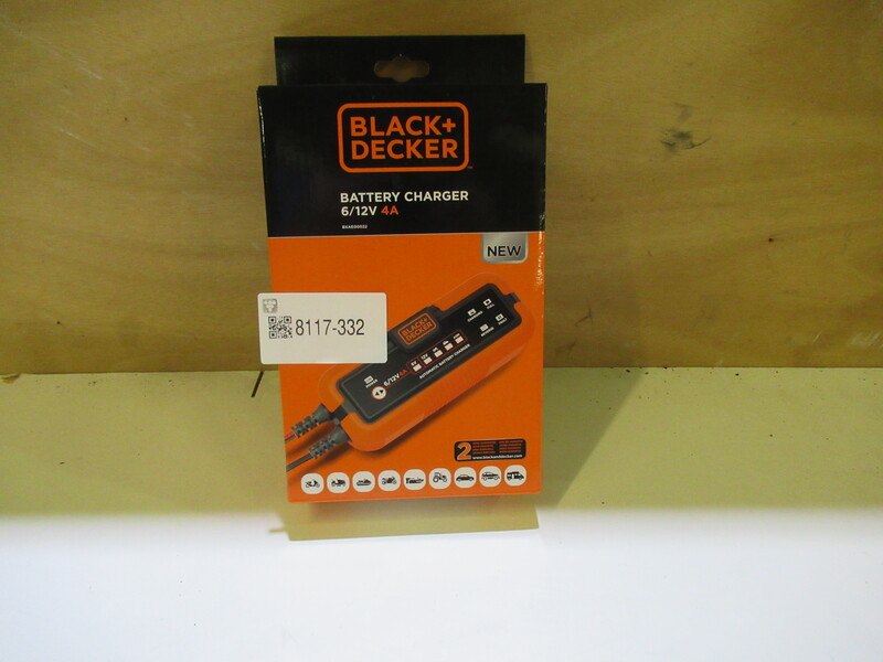 Merk: Black & Decker Product: Acculader Conditie: nieuw Specificaties: 6/12 Volt, batterijcapaciteit 120 AH.