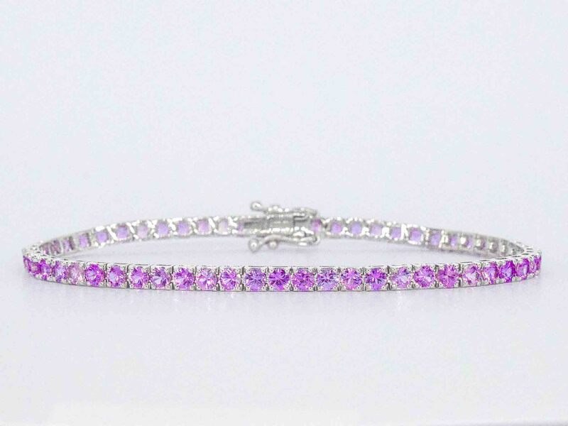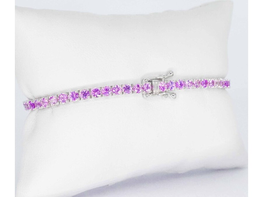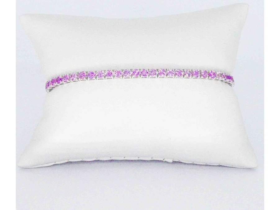 Product: Gouden tennisarmband met 6.00 carat aan roze saffieren Specificaties: Edelsteen: Saffieren Aantal: 58 stuks Slijpvorm: Rond geslepen Gewicht (carat): 6.00 carat Kleur: Roze Zuiverheid: Met natuurlijke insluitsels Juweel: Armband Gewicht: 8 gram Afmetingen/lengte: 18 cm Materiaal: 14k goud (585) Conditie: Nieuw Verpakking: Luxe sieradendoos Toelichting: De kwaliteit is overgenomen van het rapport behorend bij item. De waardebepaling is een beoordeling van een gecertificeerde diamantair, gebaseerd op consumentenprijzen. Consumentenprijs: € 6.545,- Ring kan als het mogelijk is op maat gemaakt worden.