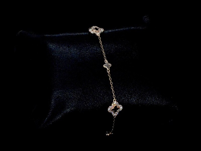Product: Rosegouden armband in klaver vier vorm met diamanten Specificaties: Diamant: Natuurlijk Aantal: 48 stuks Slijpvorm: Briljant en rond geslepen Gewicht (carat): 0.30 carat Kleur: F-G Zuiverheid: VS Slijpkwaliteit: Zeer mooi Juweel: Armband Gewicht: 3 gram Materiaal: 14 karaat (585) Conditie: Nieuw Verpakking: Luxe sieradendoos Toelichting: De kwaliteit is overgenomen van het rapport behorend bij item. De waardebepaling is een beoordeling van een gecertificeerde diamantair, gebaseerd op consumentenprijzen. Consumentenprijs: € 1.925,- Ring kan als het mogelijk is op maat gemaakt worden.