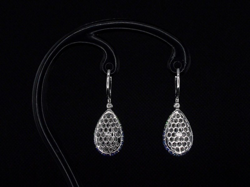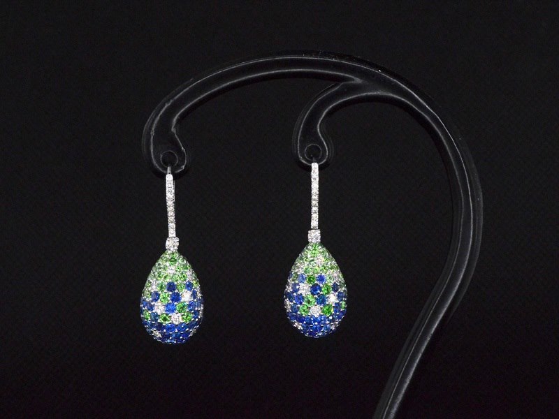 Product: Oorhangers van 18 carats goud met diamanten en blauwe saffieren Specificaties: Diamant: Natuurlijk Aantal: 42 stuks Slijpvorm: Briljant geslepen Gewicht (carat): 1.00 carat Kleur: D-E Zuiverheid: VS Slijpkwaliteit: Zeer mooi Edelsteen: Saffieren en tsavorieten Aantal: 200 stuks Slijpvorm: Rond geslepen Gewicht (carat): 6.00 carat Kleur: Blauw en groen Zuiverheid: Met natuurlijke insluitsels Juweel: Oorbellen Gewicht: 9 gram Afmetingen/lengte: 3.6 x 1.2 cm Materiaal: 18K goud (750) Conditie: Nieuw Verpakking: Luxe sieradendoos Toelichting: De kwaliteit is overgenomen van het rapport behorend bij item. De waardebepaling is een beoordeling van een gecertificeerde diamantair, gebaseerd op consumentenprijzen. Consumentenprijs: € 22.400,- Ring kan als het mogelijk is op maat gemaakt worden.