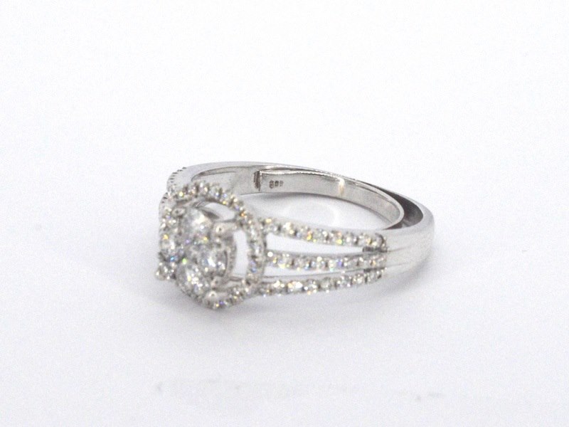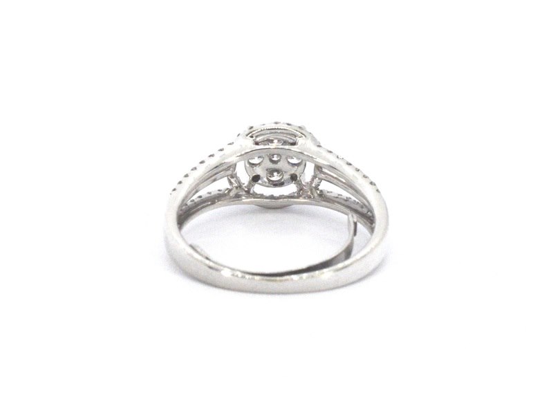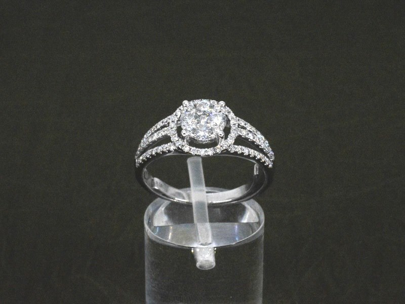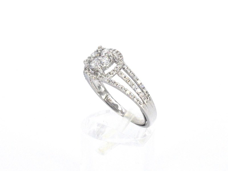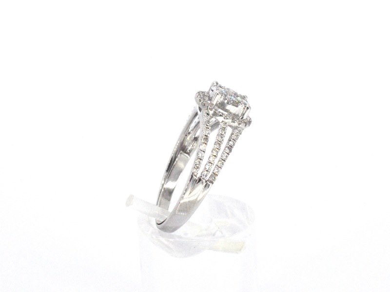 Product: Witgouden ring met natuurlijk diamanten van 1.20 carat totaal Specificaties: Diamant: Natuurlijk Aantal: 4 stuks Slijpvorm: Briljant geslepen Gewicht (carat): 0.30 carat Kleur: F-G Zuiverheid: VS Diamant (secundair): Natuurlijk Aantal diamanten: 77 stuks Slijpvorm: Briljant geslepen Gewicht (carat): 0.90 carat Kleur: F-G Zuiverheid: VS Juweel: Ring Gewicht: 3.9 gram Ringmaat (op maat gemaakt*): 54.5 (17.25 mm) Verstelbaar Materiaal: 14k goud (585) Conditie: Zo goed als nieuw Verpakking: Luxe sieradendoos Toelichting: De kwaliteit is overgenomen van het rapport behorend bij item. De waardebepaling is een beoordeling van een gecertificeerde diamantair, gebaseerd op consumentenprijzen. Extra informatie: De ring is op maat verstelbaar door een extra veer aan de binnenkant van de ring. Consumentenprijs: € 6.160,- Ring kan als het mogelijk is op maat gemaakt worden.