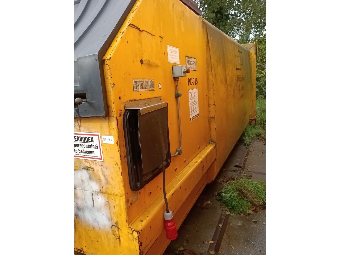 Merk: Kiggen Product: 15 m³ Perscontainer voorzien van haakarm Conditie: Gebruikt Specificaties: Operationeel uit het werk gehaald