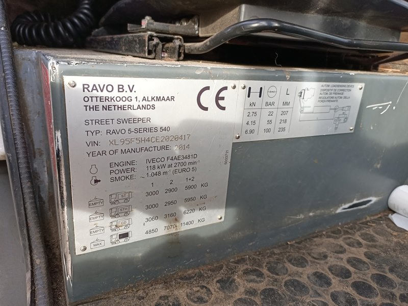 Merk: RAVO Product: Veegmachine BouwJaar: 2014 Conditie: Gebruikt Specificaties: Kenteken TPV-50-T Brandstof: Diesel Datum eerste toelating: 30 juni 2014 Maximumconstructiesnelheid: 40 km/h Afgelezen km stand: 114348 km Afgelezen urenstand 1: 15171h. Afgelezen urenstand 2: 9563h.