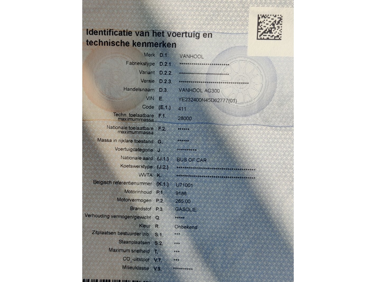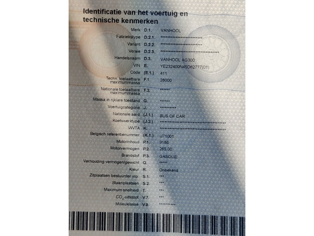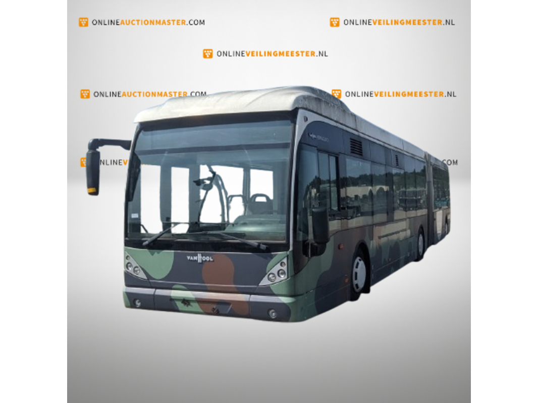 Merk: Van Hool Product: Harmonicabus Afmeting: Lengte ca. 16 meter BouwJaar: 2008 Conditie: gebruikt Specificaties: Kenteken: Niet geregistreerd Merk: Van Hool Productie nummer: 62778 Eerste toelating nationaal: Onbekend Bouwjaar: 2008 APK vervaldatum: Onbekend Brandstof: Gasolie Transmissie: Automaat Afgelezen tellerstand: Onbekend Aantal sleutels: 0 VIN: YE232400N45D62778 Massa rijklaar: 17700 kg Opties e.d. Volgens opgave voorzien van motor DAF AG300 Aantal zitplaatsen: 54 +1 Waargenomen gebreken Gebruikerssporen