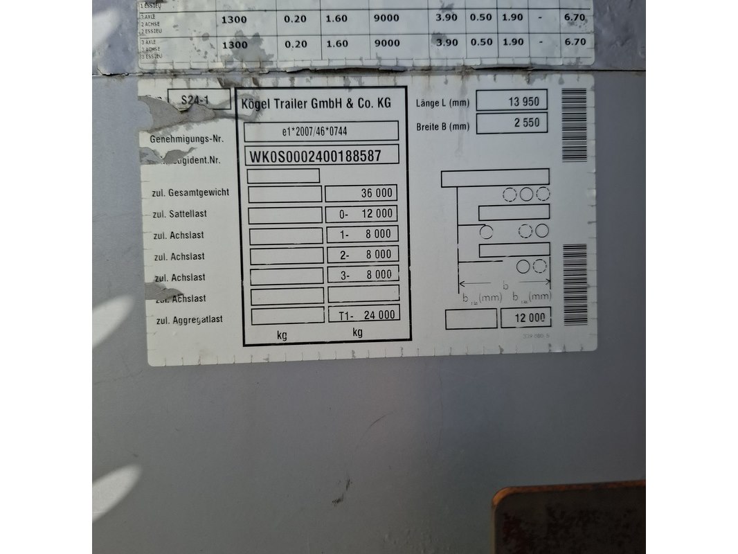 Merk: Kogel Product: Oplegger Conditie: gebruikt Specificaties: Kenteken: Geen kenteken Eerste toelating nationaal: Onbekend APK vervaldatum: Onbekend Brandstof: n.v.t. Afgelezen tellerstand: n.v.t. Transmissie: n.v.t. Aantal sleutels: n.v.t. VIN nummer: WK0S0002400188587 Start: n.v.t. Opties en uitrusting Drie assen Max. 27000 Kg. Waargenomen gebreken Diverse beschadigingen rondom Betreft een Pools voertuig. U moet een invoer binnen EU afspreken bij RDW.