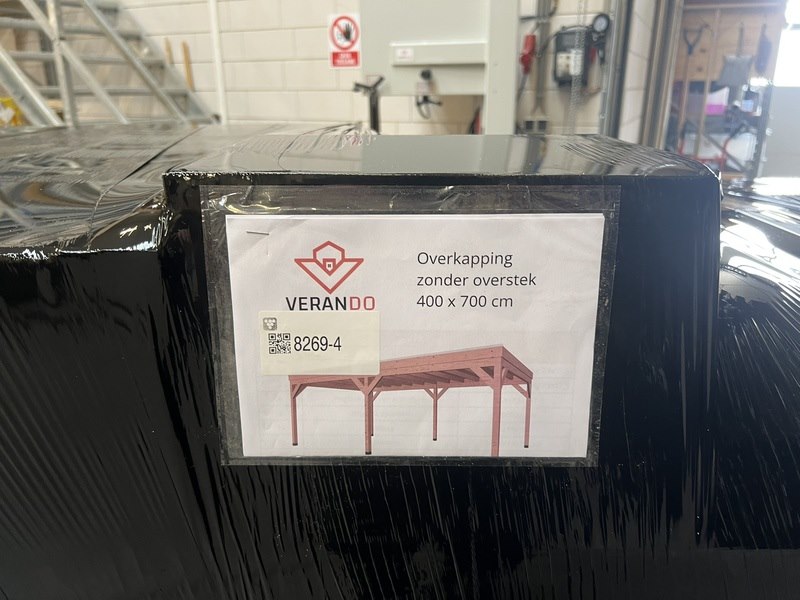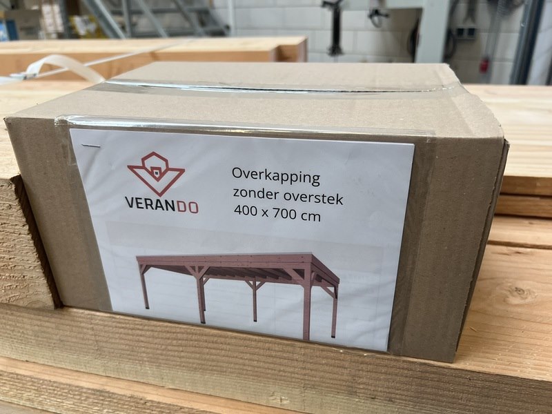 Merk: Verando Product: Douglas overkapping 400*700cm met achterwand Materiaal: Douglas Conditie: nieuw Specificaties: Deze overkapping bestaat uit hoogwaardige, bezaagde, Europese, Douglas houten onderdelen en wordt geleverd als een compleet pakket inclusief bevestigingsmaterialen en een duidelijke, stapsgewijze handleiding voor de montage. Specificaties: •Palen van 12 × 12 cm •Ringbalk van 5 × 15 cm (bij 400 cm diepte 7,5 x 17,5 cm) •Balklaag van 5 x 15 cm •Dakbeschot van 1,8 cm •Boeiboorden van 2,5 × 20 cm •Schoren van 5 × 15 cm •Bezaagd Europees douglas hout •Inclusief alle benodigde bevestigingsmaterialen •Heldere en gebruiksvriendelijke montagehandleiding