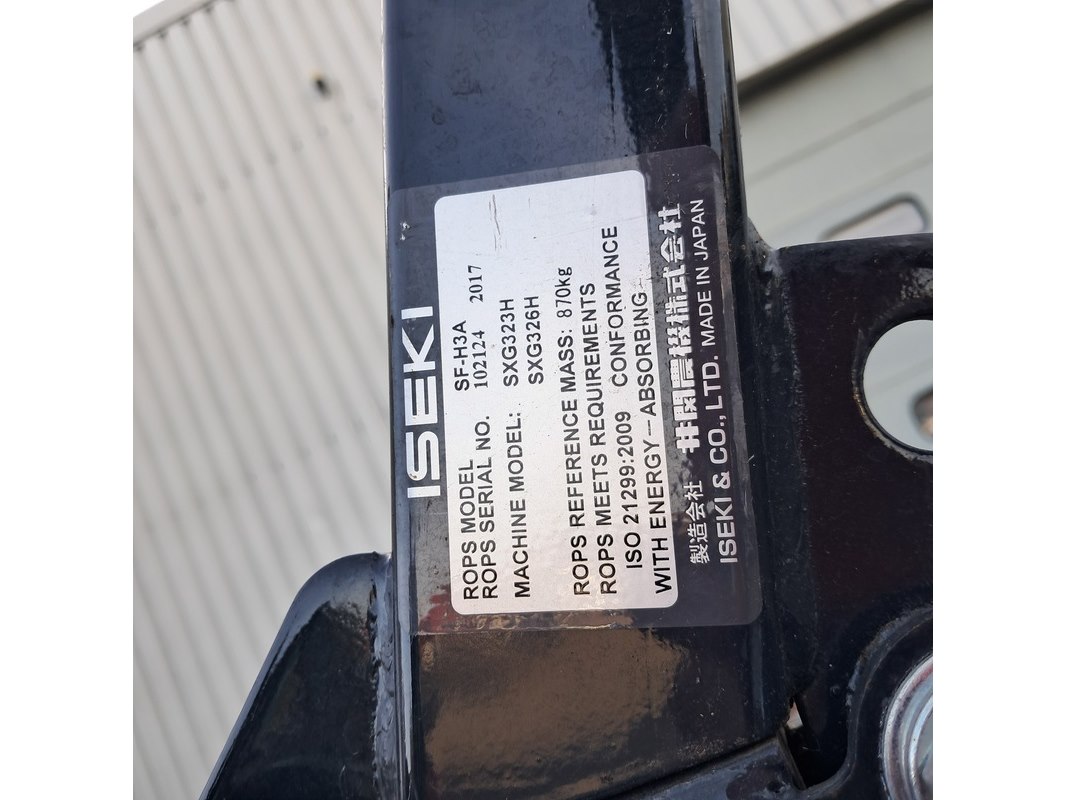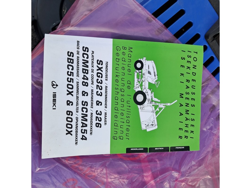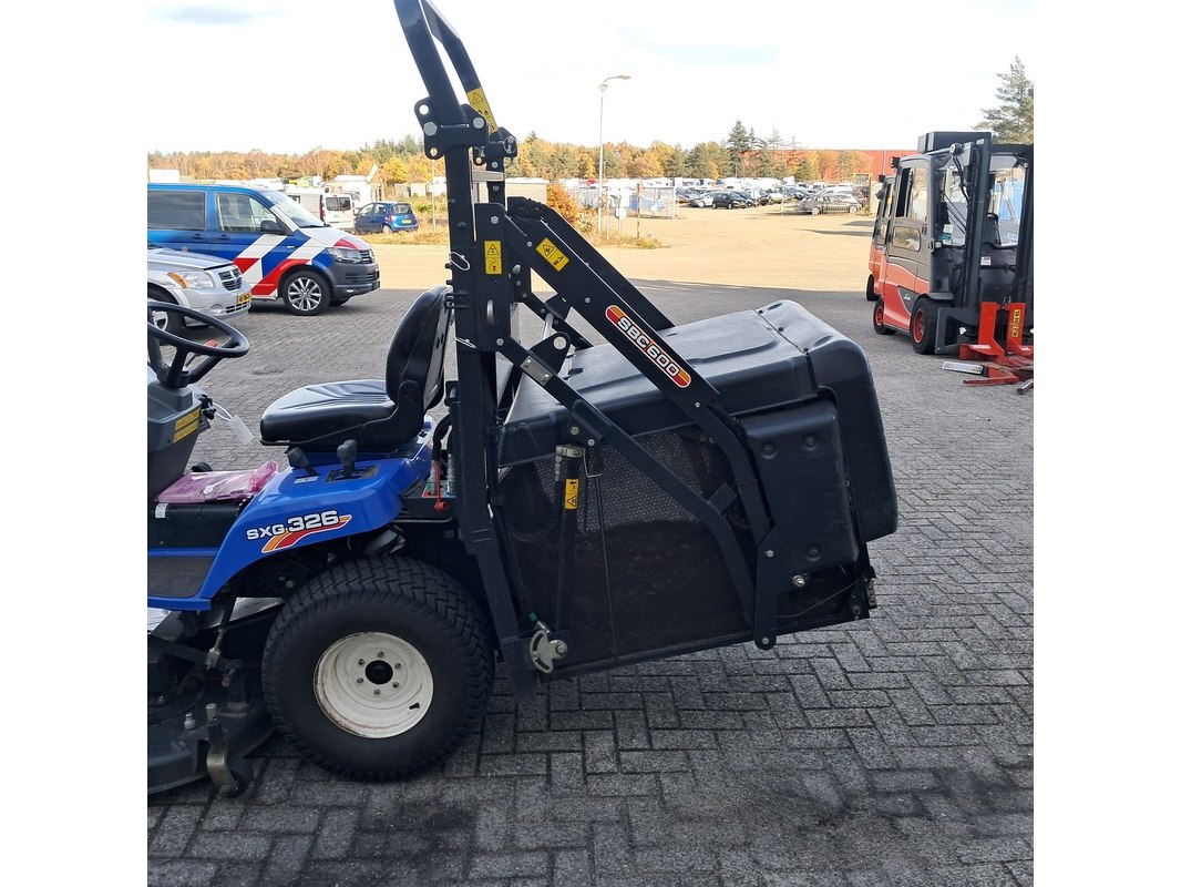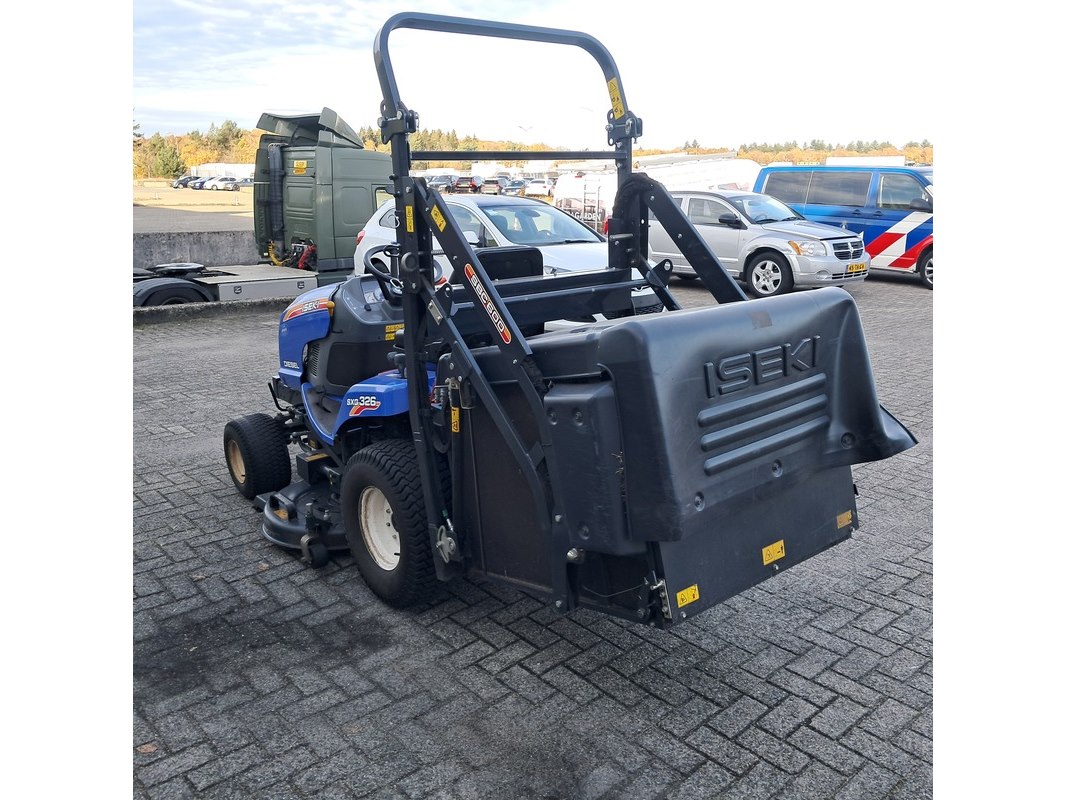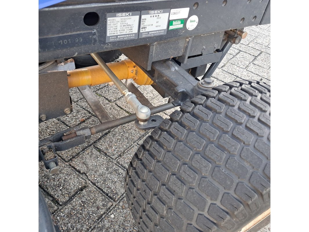 Merk: Iseki Product: Zitmaaier Conditie: gebruikt Specificaties: Produkt: Hooglossende grasmaaier Kenteken: geen Merk: Iseki Model: SGX326 Motor: 26 pk 3 cilinder watergekoelde dieselmotor Maaicapaciteit: 122 cm maaibreedte Aandrijving: Hydrostatische transmissie Stuurbekrachtiging: ja Tankinhoud: 21 liter Start: ja Conditie: gebruikt Afgelezen tellerstand: 00.310 draaiuren Handleiding: ja Opties e.d.: 600 liter hooglossende grasopvangbak Waargenomen gebreken Maaifunctie weigert