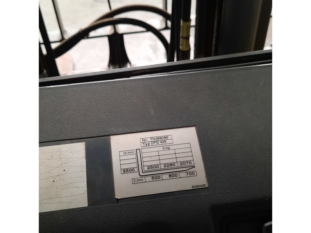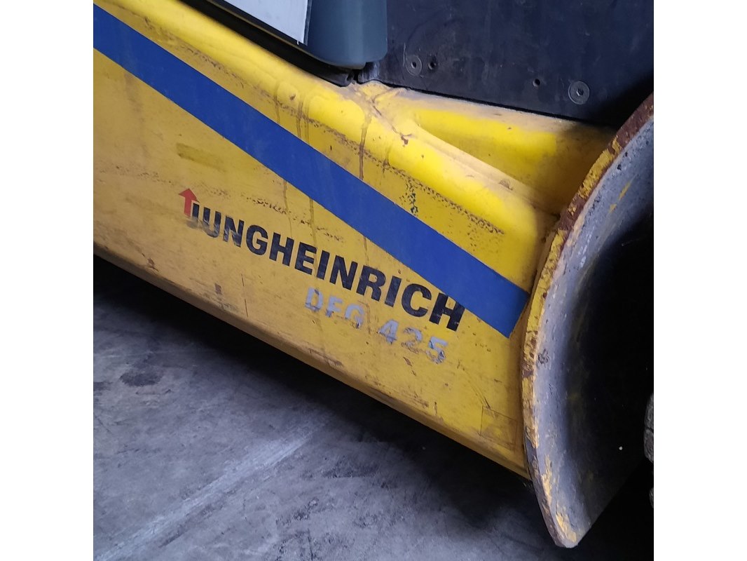 Merk: Jungheinrich Product: Diesel heftruck Afmeting: Doorrijhoogte ca. Conditie: gebruikt Specificaties: Typeplaat ontbreekt Diesel Maximale hefhoogte ca. 350 cm. Tweedelige mast Start: Nee