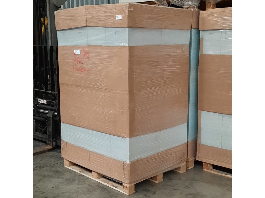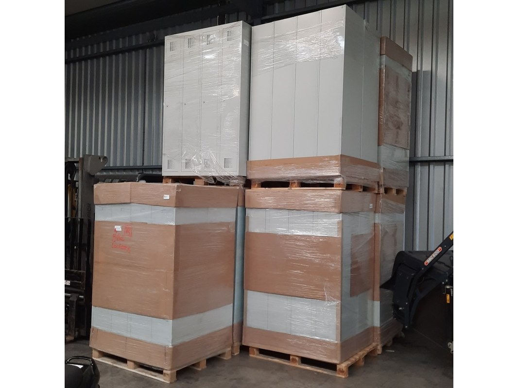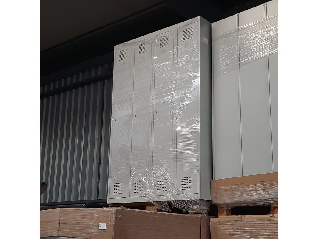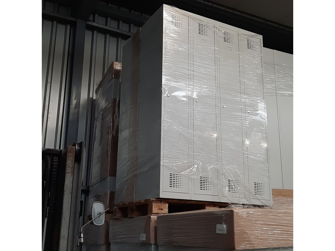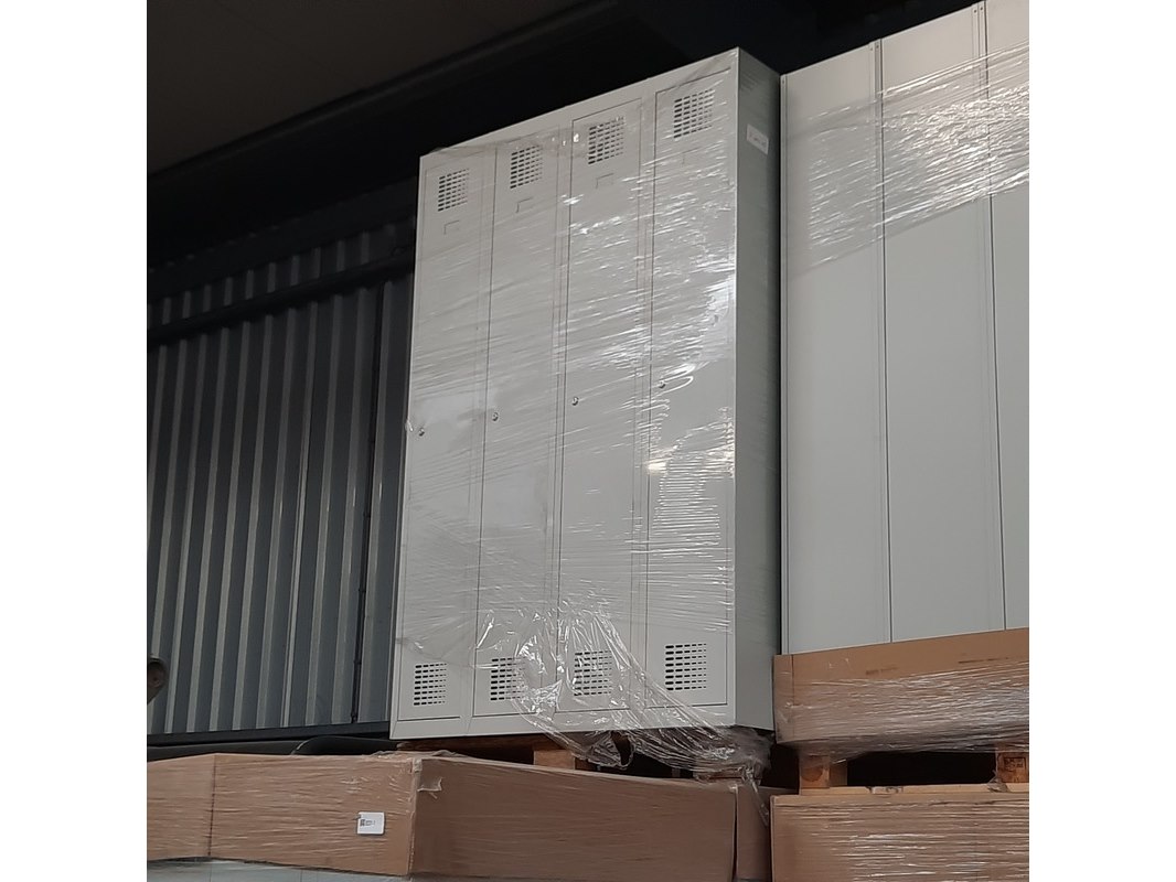 Product: Lockerkast Afmeting: HxBxD ca. 180x30x50 cm. Conditie: gebruikt Specificaties: Partij omvat 9 pallets met garderobekasten (totaal 72 stuks). Kasten zijn ongebruikt. Afmetingen 180 x 30 x 50 cm. Enkele deur voorzien van cilinderslot.