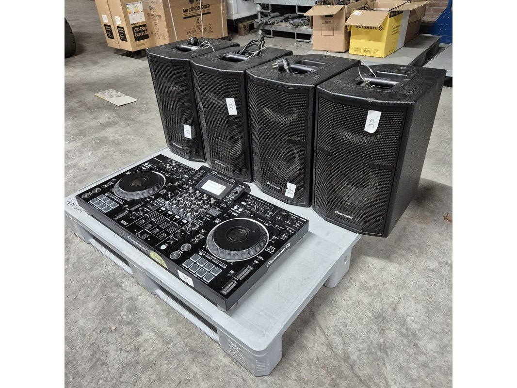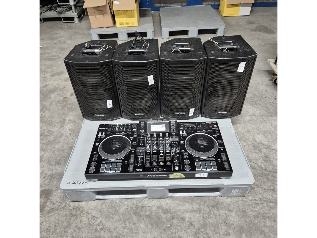 Merk: Pioneer Product: DJ set en 4 luidsprekers Afmeting: Afmetingen luidsprekers hxbxd ca. 52x32x37 cm Conditie: gebruikt Specificaties: Set bestaande uit Pioneer all-in-one DJ systeem en 4 Pioneer luidsprekers. Werking en compleetheid onbekend Exclusief kabels Exclusief pallet