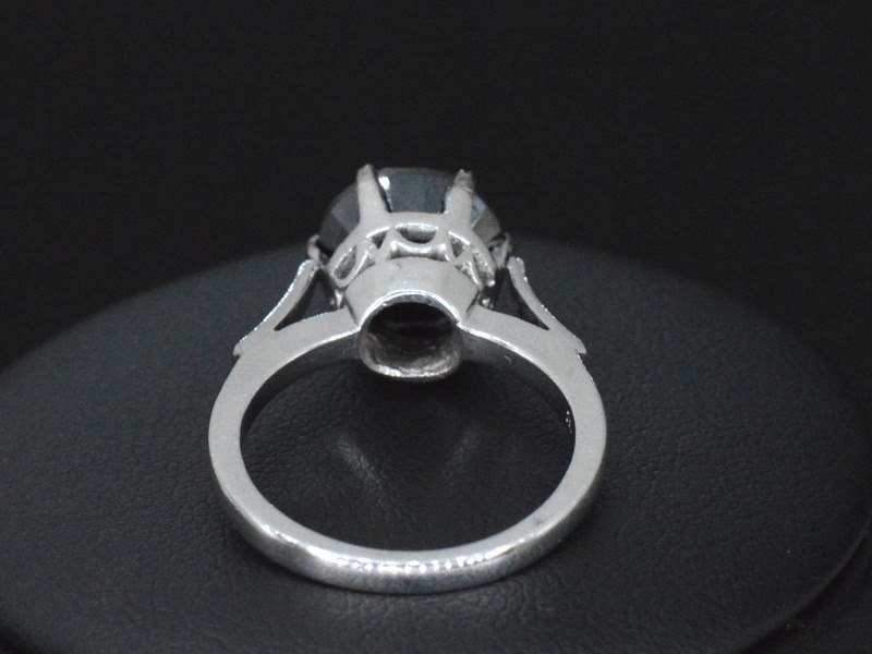 Product: Witgouden ring met zwarte diamant Specificaties: Diamant: Natuurlijk Aantal: 1 stuk Slijpvorm: Briljant geslepen Gewicht (carat): 5.00 carat Kleur: Zwart Zuiverheid: Opaak (enhanced) Juweel: Ring Gewicht: 6.5 gram Ringmaat (op maat gemaakt*): 51 (16.25 mm) Materiaal: 18k goud (750) Conditie: Vintage Verpakking: Luxe sieradendoos Toelichting: De kwaliteit is overgenomen van het rapport behorend bij item. De waardebepaling is een beoordeling van een gecertificeerde diamantair, gebaseerd op consumentenprijzen. Consumentenprijs: € 6.160,-