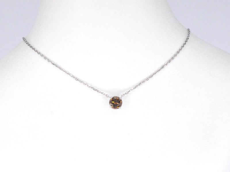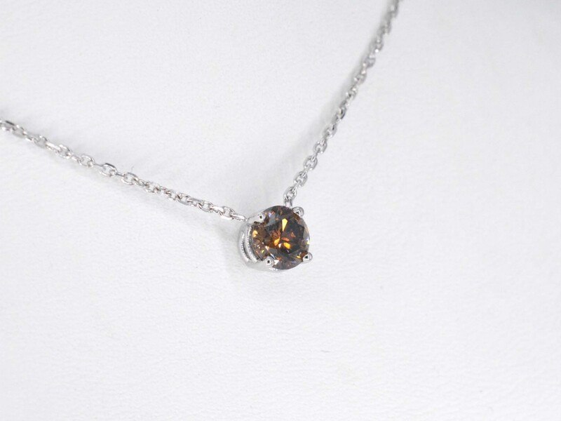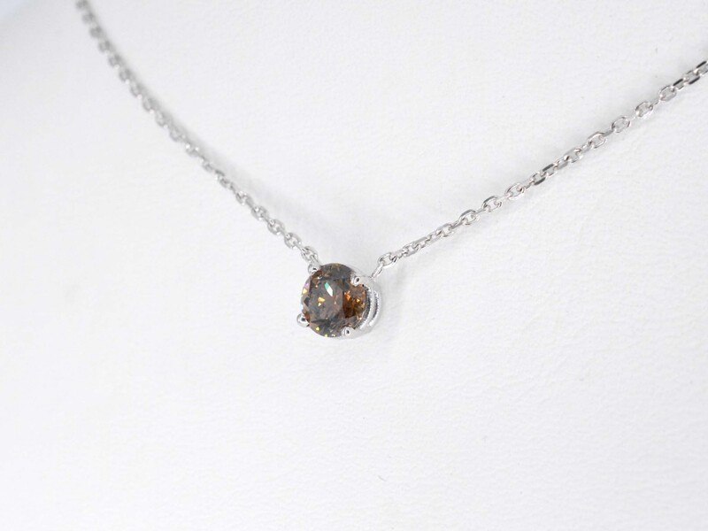 Product: Witgouden collier met een diamant van 1.10 carat van GASSAN 121 Specificaties: Diamant: Natuurlijk Aantal: 1 stuk Slijpvorm: Briljant geslepen (gassan 121) Gewicht (carat): 1.00 carat Kleur: Fancy intense brown Zuiverheid: SI1 Slijpkwaliteit: Zeer mooi Juweel: Hanger (incl. ketting) Gewicht: 3.4 gram Afmetingen/lengte: 37 cm (verstelbaar) Materiaal: 18K goud (750) Conditie: Zo goed als nieuw Verpakking: Luxe sieradendoos Toelichting: De kwaliteit is overgenomen van het rapport behorend bij item. De waardebepaling is een beoordeling van een gecertificeerde diamantair, gebaseerd op consumentenprijzen. Consumentenprijs: € 11.900,-