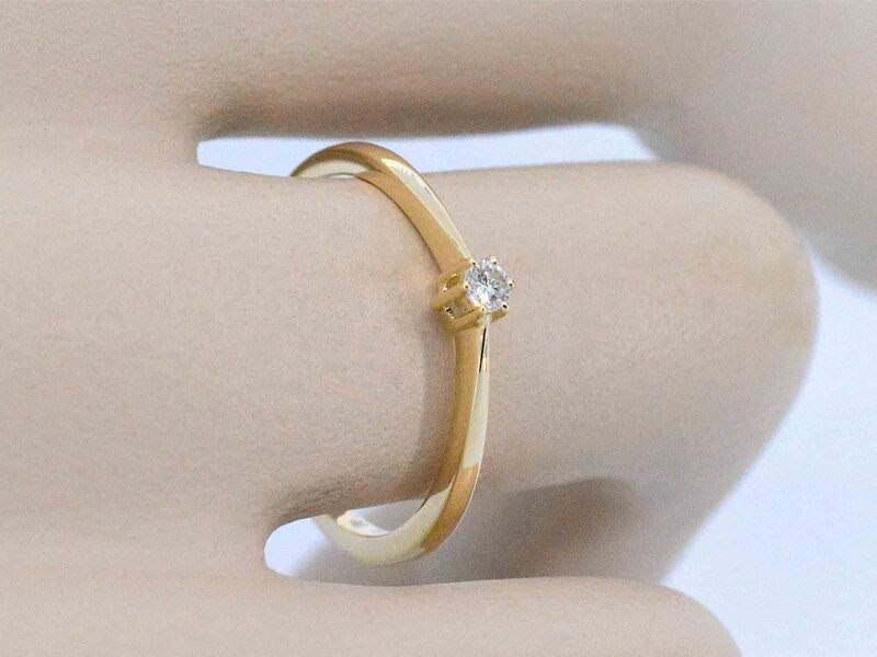 Product: Gouden ring solitaire met een briljant geslepen diamant Specificaties: Diamant: Natuurlijk Aantal: 1 stuk Slijpvorm: Briljant geslepen Gewicht (carat): 0.10 carat Kleur: F-G Zuiverheid: VS-SI Slijpkwaliteit: Zeer mooi Juweel: Ring Gewicht: 1.6 gram Ringmaat (op maat gemaakt*): 54 (17.25 mm) Materiaal: 14 karaat (585) Conditie: Nieuw Verpakking: Luxe sieradendoos Toelichting: De kwaliteit is overgenomen van het rapport behorend bij item. De waardebepaling is een beoordeling van een gecertificeerde diamantair, gebaseerd op consumentenprijzen. Consumentenprijs: € 1.418,-
