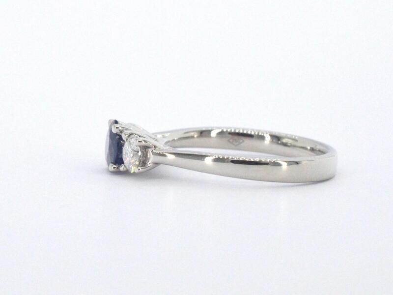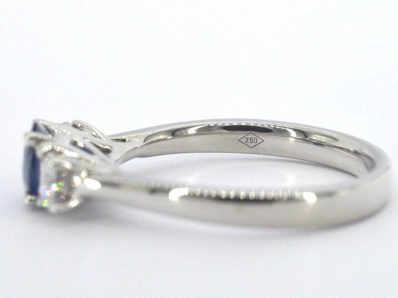 Product: Witgouden trilogy ring met diamanten en saffier Specificaties: Diamant: Natuurlijk Aantal: 2 stuks Slijpvorm: Briljant geslepen Gewicht (carat): 0.50 carat Kleur: F-G Zuiverheid: VS Slijpkwaliteit: Zeer mooi Edelsteen: saffier Aantal: 1 stuk Slijpvorm: Rond geslepen Gewicht (carat): Circa 1.00 carat Kleur: Mooi blauw Zuiverheid: Met natuurlijke insluitsels Kwaliteit: Hoge kwaliteit saffier Juweel: Ring Gewicht: 4 gram Ringmaat (op maat gemaakt*): 53 (17 mm) Materiaal: 18k goud (750) Conditie: Nieuw Verpakking: Luxe sieradendoos Toelichting: De kwaliteit is overgenomen van het rapport behorend bij item. De waardebepaling is een beoordeling van een gecertificeerde diamantair, gebaseerd op consumentenprijzen. Consumentenprijs: € 8.000,-