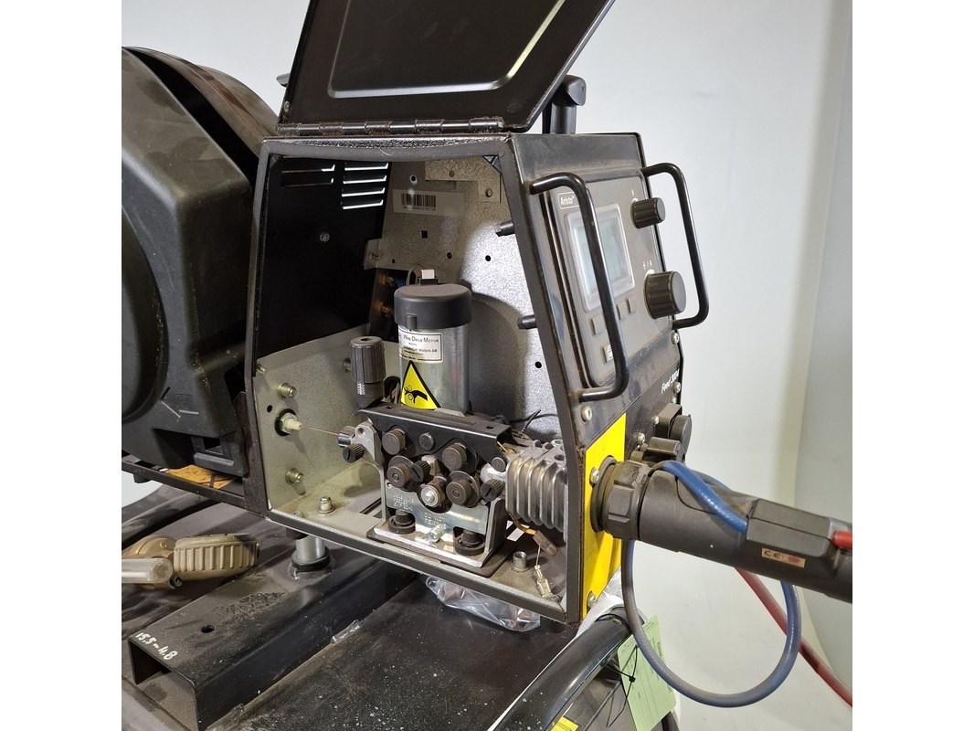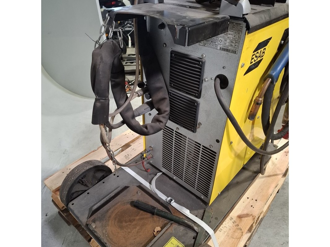 Merk: ESAB Product: Lasapparaat Afmeting: hxbxd ca. 150x70x104 cm Specificaties: 400V Uitgerust met ESAB Aristofeed 3004 puls apparaat Technische staat en compleetheid onbekend. Exclusief pallet.