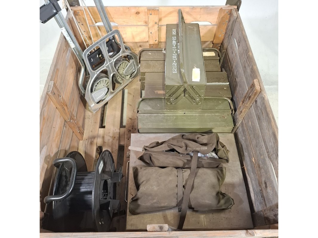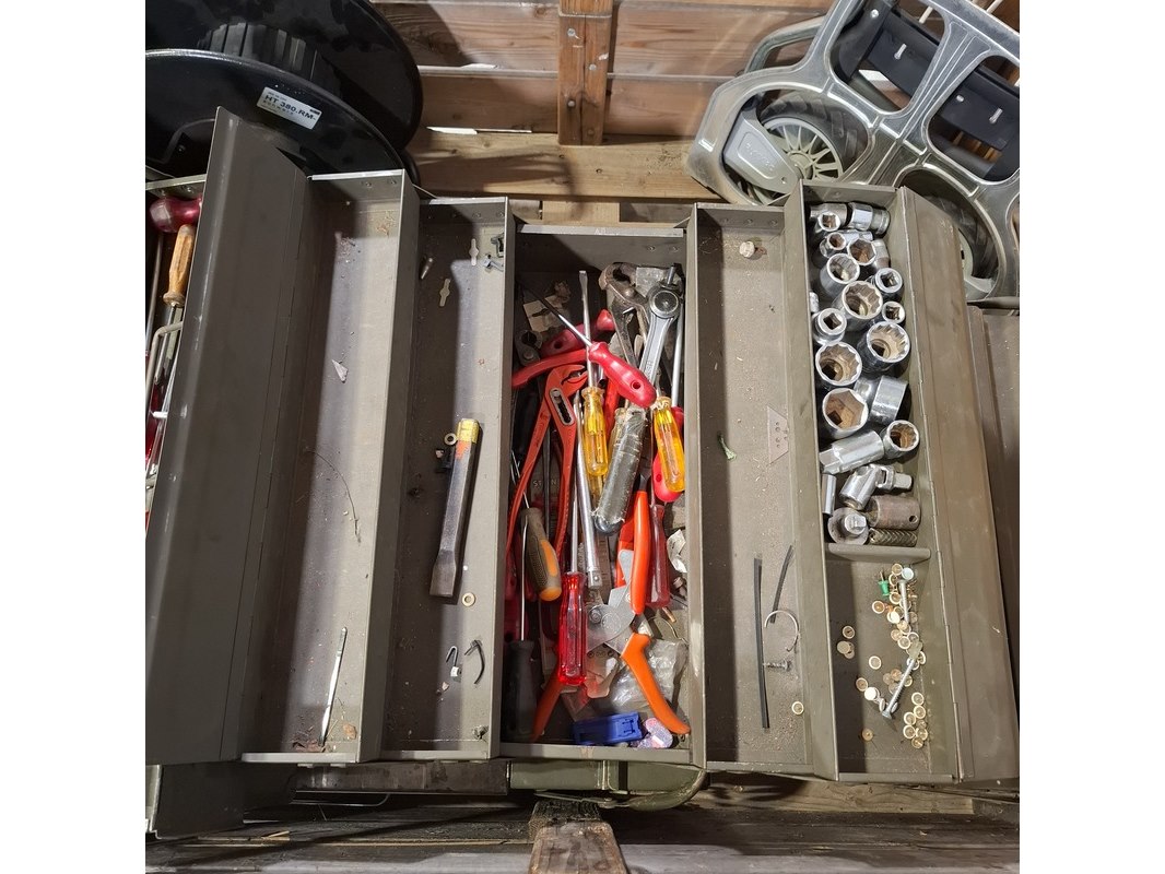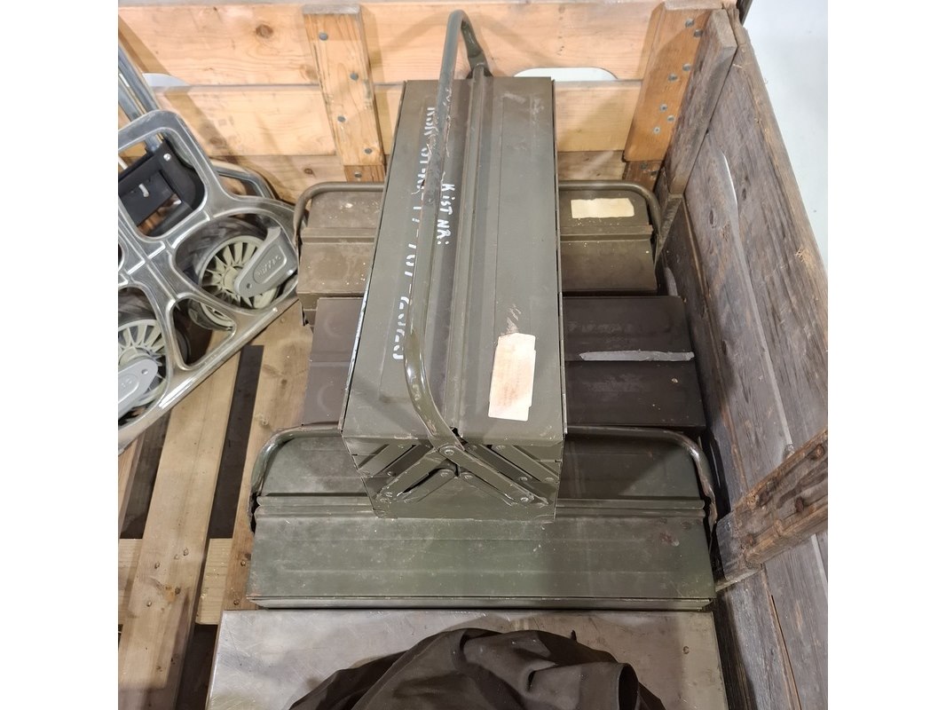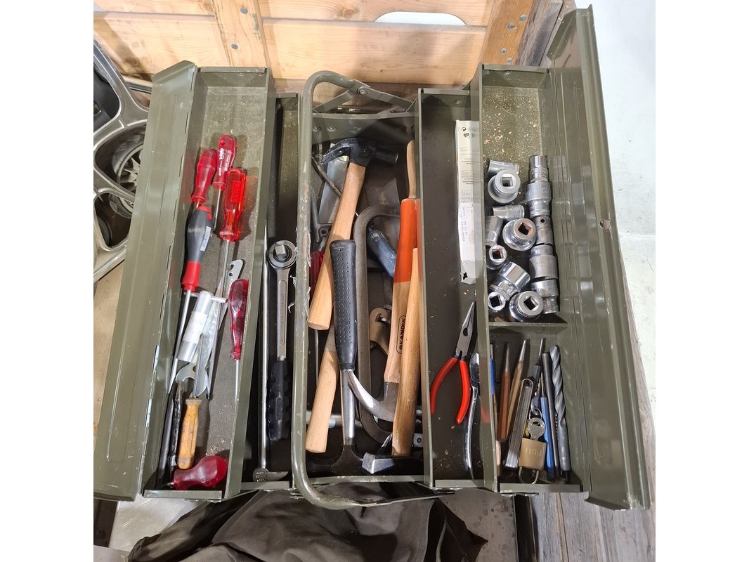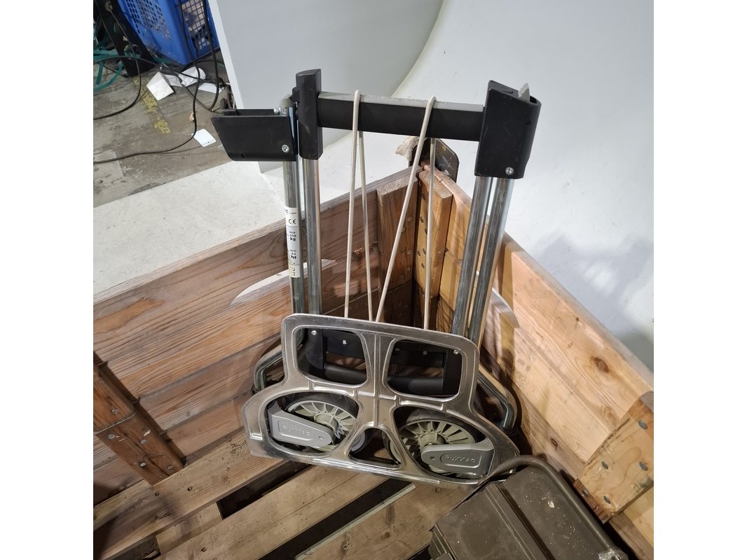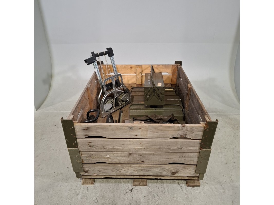 Product: Weegschaal, gereedschap en steekwagen Specificaties: Inhoud gereedschapskoffer bestaande uit o.a. hamers, doppen set, spanningsmeter, ratel, tangen, etc Inklapbare steekwagen Servo Balans industriële weegschaal Technische staat en compleetheid onbekend. Exclusief palletkist.
