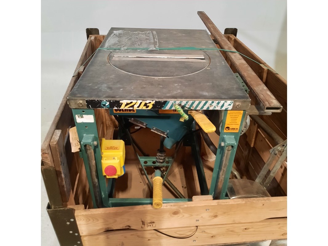 Merk: Gjerde Product: Zaagtafel Afmeting: lxbxh ca. 150/87x85x87 cm BouwJaar: 2012 Conditie: gebruikt Specificaties: 230V 50Hz 2200W Diameter 300 mm Technische staat en compleetheid onbekend. Exclusief palletkist.