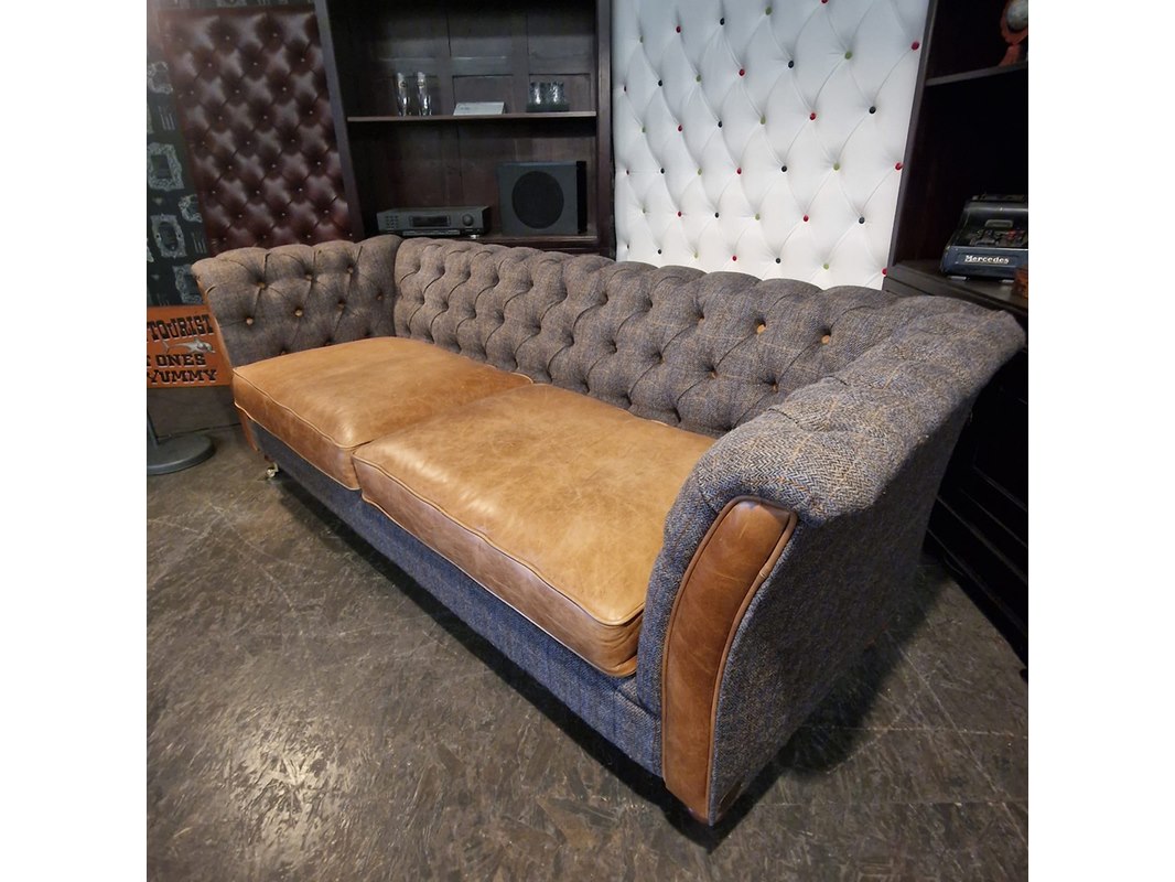 Merk: Chesterfield Product: 3-Zits Bank Kleur: grijs Materiaal: stof, leer Afmeting: 77x213x87 Conditie: nieuw Specificaties: Afmetingen: Breedte: 213 cm Hoogte: 77 cm Diepte: 87 cm