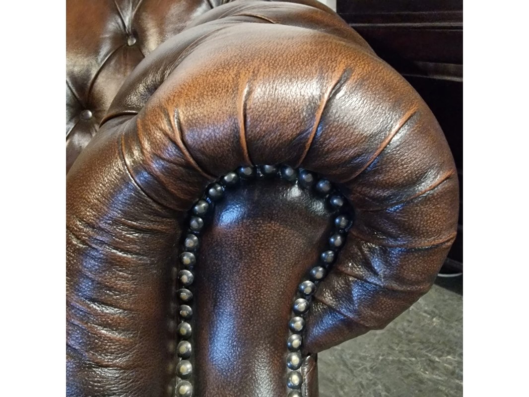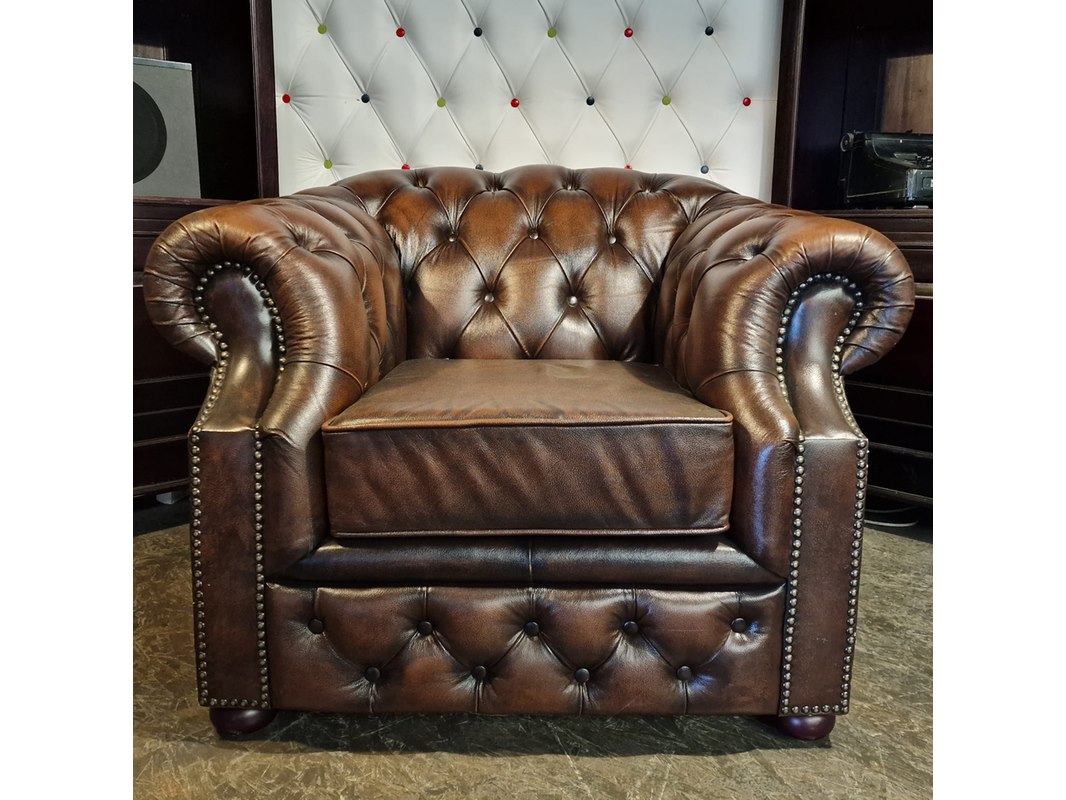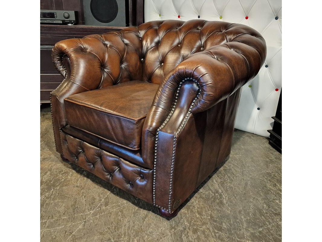 Merk: Chesterfield Product: Fauteuil Kleur: bruin Materiaal: leer Afmeting: 81x102x100 Conditie: nieuw Specificaties: Afmetingen: Breedte:102 cm Hoogte: 81 cm Diepte: 100 cm Zitdiepte: 57 cm Zithoogte: 43 cm