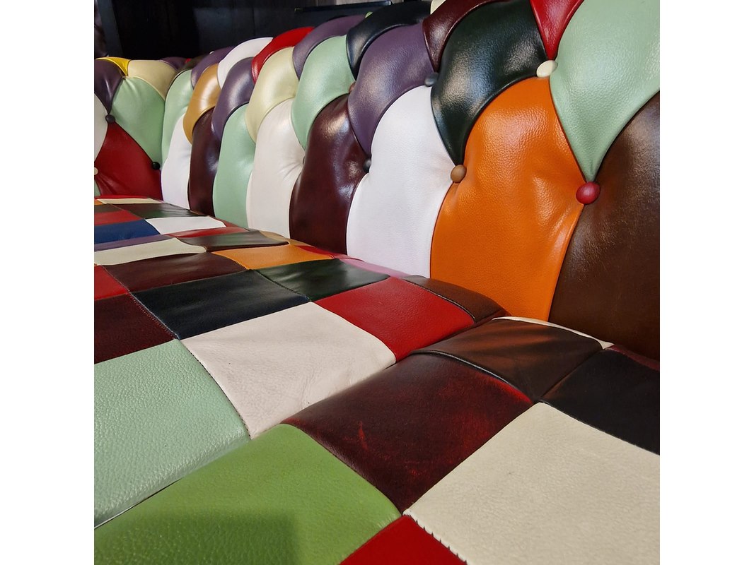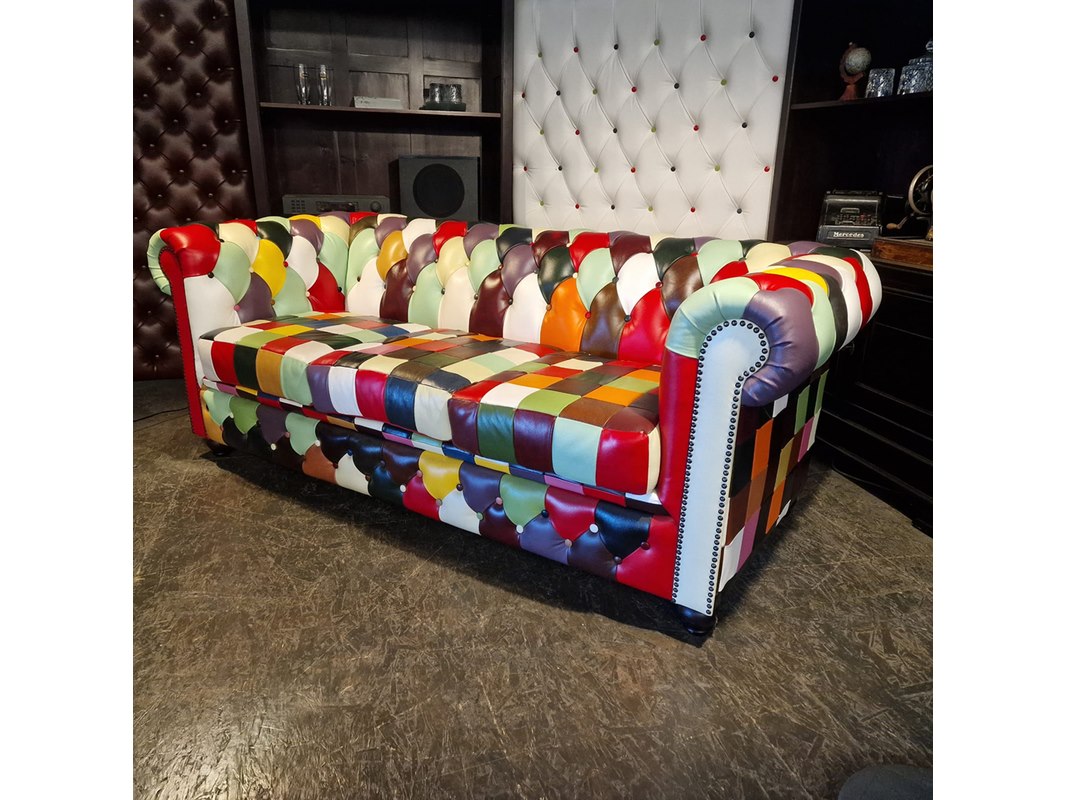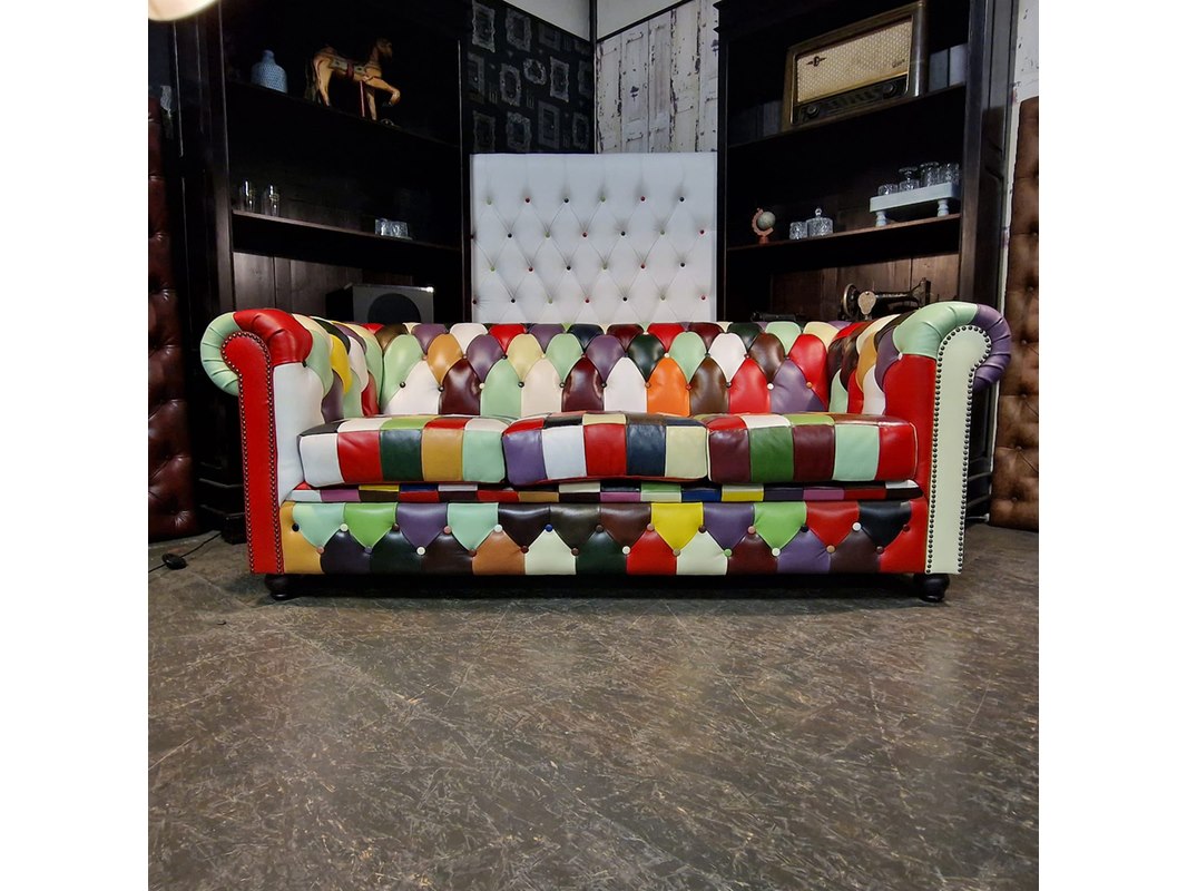 Merk: Chesterfield Product: 3-Zits Bank Kleur: meerkleurig Materiaal: leer Afmeting: 79x200x92 Conditie: nieuw Specificaties: Afmetingen: Breedte: 200 cm Hoogte: 79 cm Diepte: 92 cm Zithoogte: 50 cm Zitdiepte: 56 cm