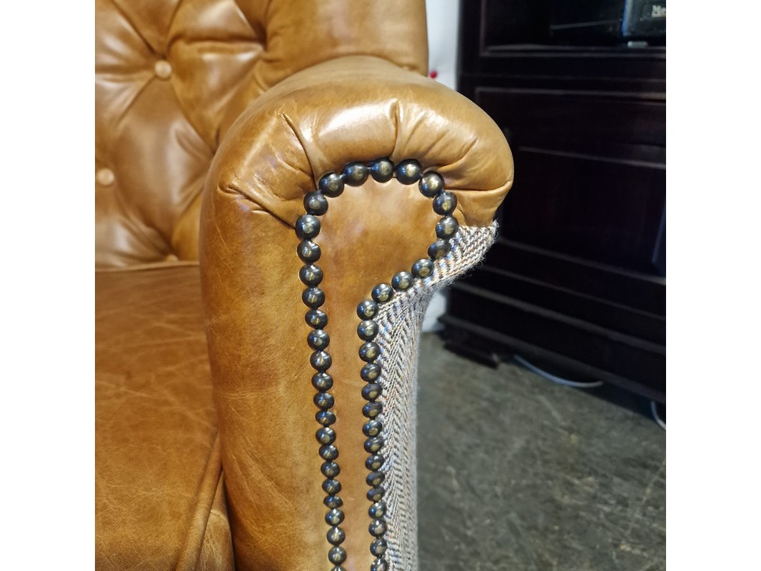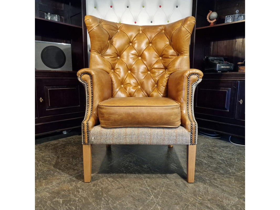 Merk: Chesterfield Product: Fauteuil Kleur: bruin Materiaal: leer, stof Afmeting: 114x88x88 Conditie: nieuw Specificaties: Afmetingen: Breedte: 88 cm Hoogte: 114 cm Diepte: 88 cm