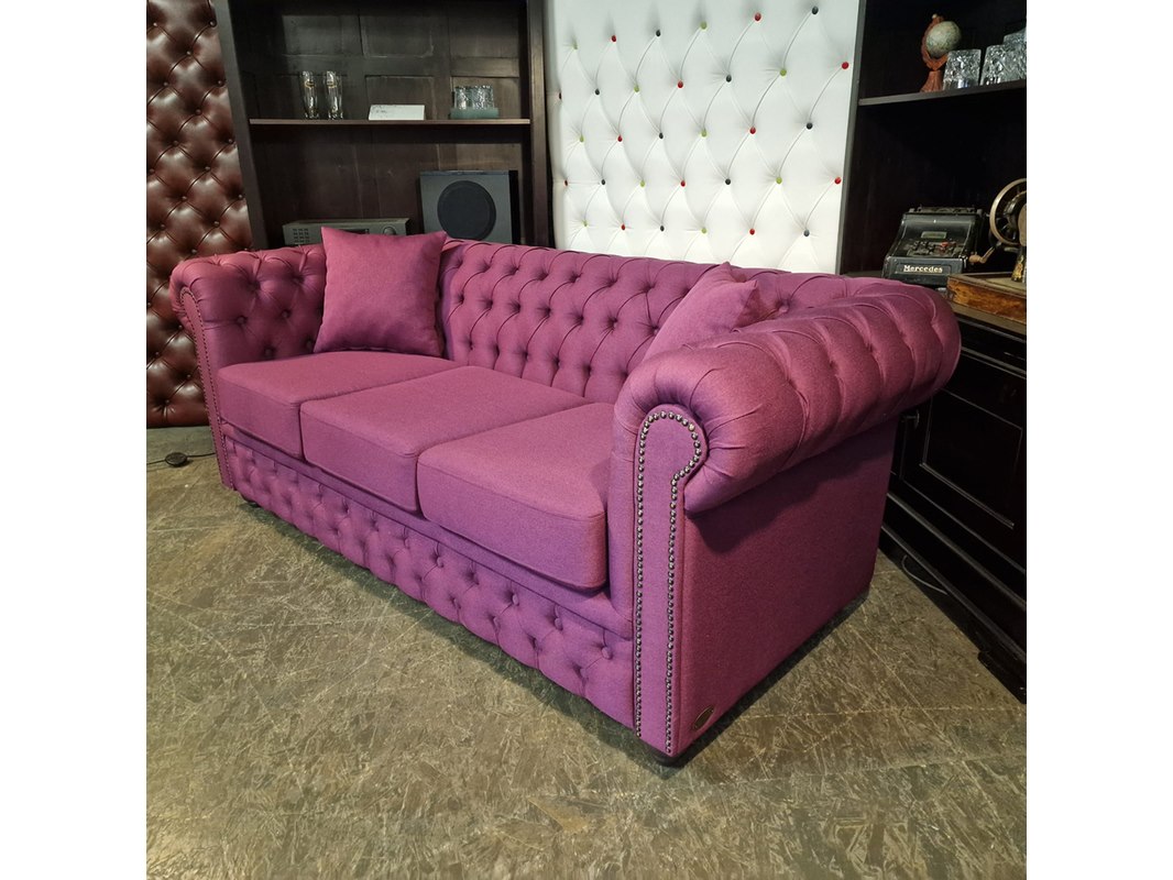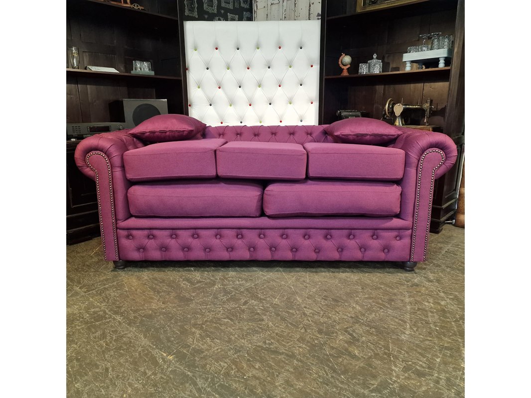 Merk: Chesterfield Product: 3-Zits Bank Kleur: roze Materiaal: stof Afmeting: 79x200x92 Conditie: nieuw Specificaties: Afmetingen: Breedte: 200 cm Hoogte: 79 cm Diepte: 92 cm Zithoogte: 50 cm Zitdiepte: 56 cm Bank kan worden ingericht met 2 of 3 zitkussens.