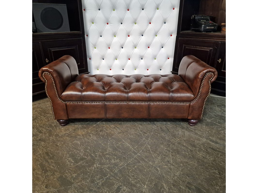 Merk: Chesterfield Product: Voetenbank Kleur: bruin Materiaal: leer Afmeting: 60x160x45 Conditie: nieuw Specificaties: Afmetingen: Breedte: 160 cm Hoogte: 60 cm Diepte: 45 cm Zithoogte: 44 cm