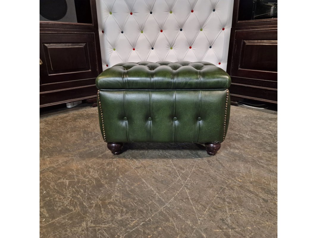 Merk: Chesterfield Product: Hocker Kleur: groen Materiaal: leer Afmeting: 44x65x57 Conditie: nieuw Specificaties: Afmetingen: Breedte: 65 cm Hoogte: 44 cm Diepte: 57 cm