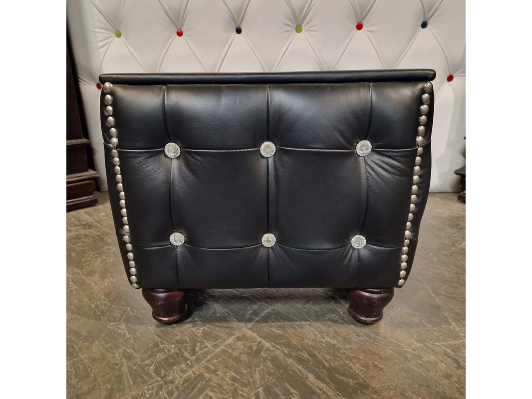 Merk: Chesterfield Product: Poef Kleur: zwart Materiaal: leer Afmeting: 38x34x44 Conditie: nieuw Specificaties: Afmetingen: Breedte: 34 cm Hoogte: 38 cm Diepte: 44 cm