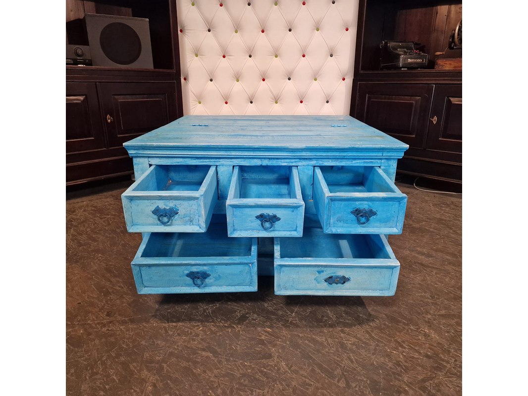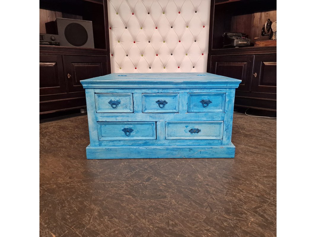 Merk: Chesterfield Product: Salontafel Kleur: blauw Materiaal: hout Afmeting: 47x90x90 Conditie: nieuw Specificaties: Afmetingen: Breedte: 90 cm Hoogte: 47 cm Diepte: 90 cm