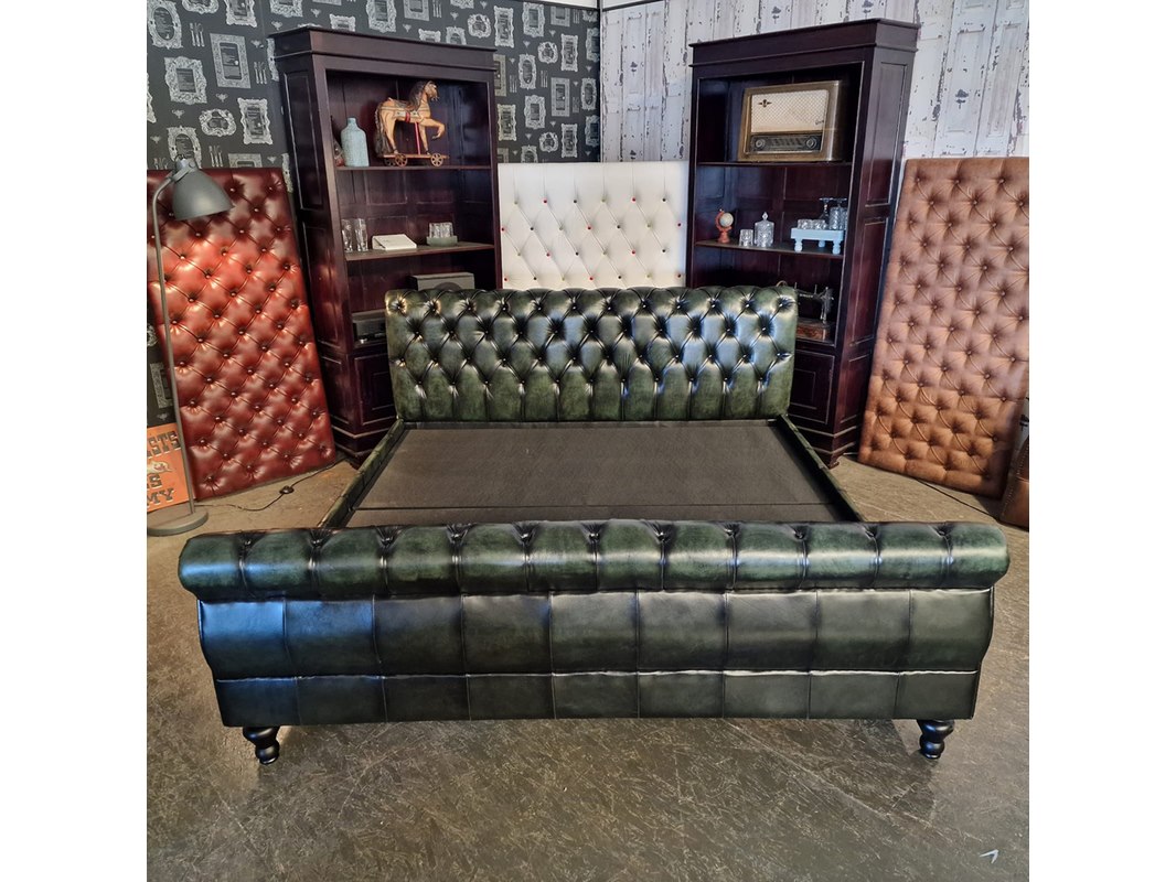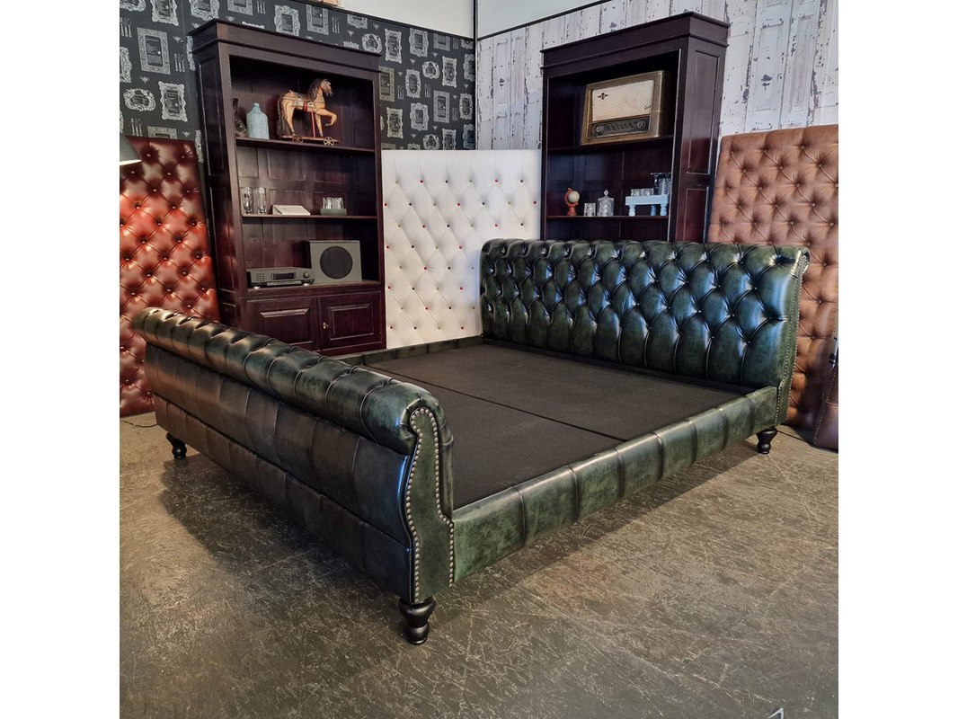 Merk: Chesterfield Product: Bed Kleur: groen Materiaal: leer Afmeting: 97x210x225 Conditie: nieuw Specificaties: Afmetingen: Breedte:210 cm Hoogte: 97 cm Diepte: 225 cm