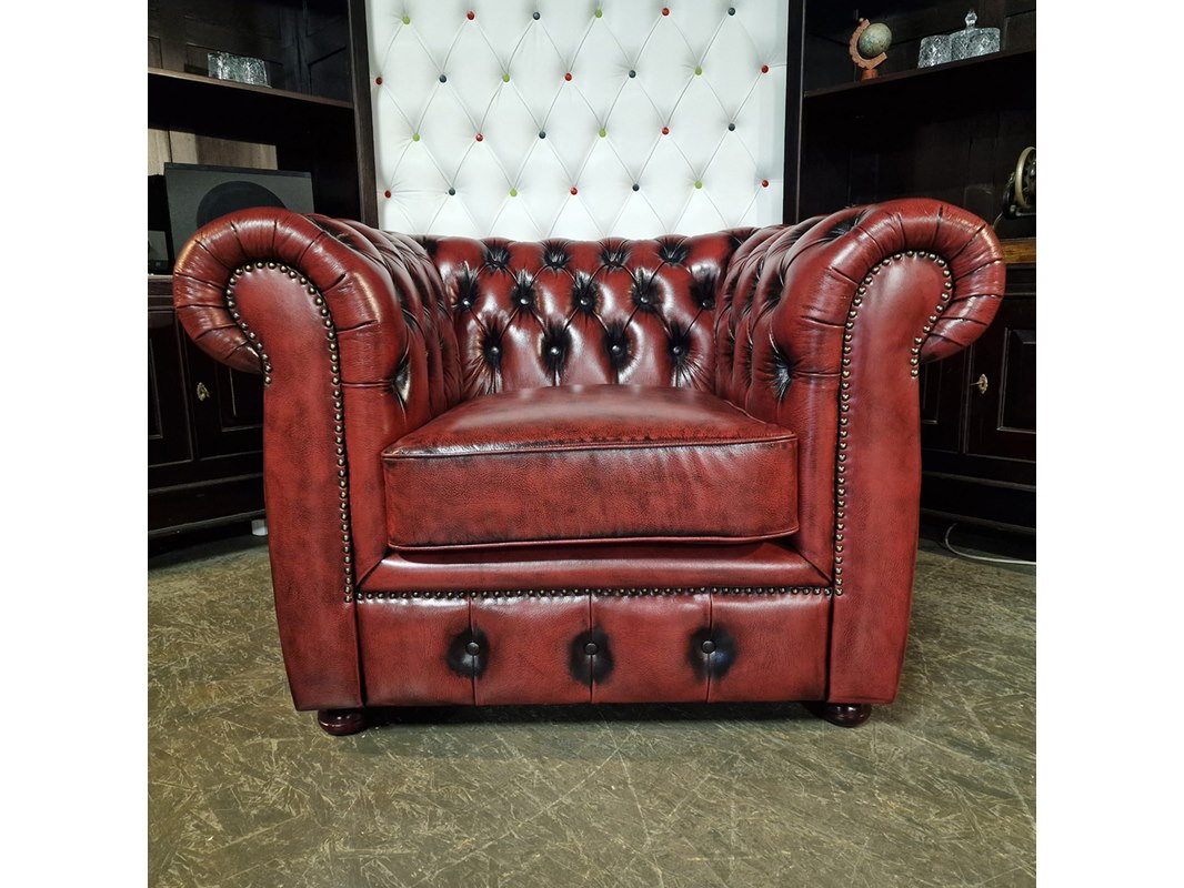 Merk: Chesterfield Product: Fauteuil Kleur: rood Materiaal: leer Afmeting: 79x110x93 Conditie: nieuw Specificaties: Afmetingen: Breedte: 110 cm Hoogte: 79 cm Diepte: 93 cm Zithoogte: 49 cm
