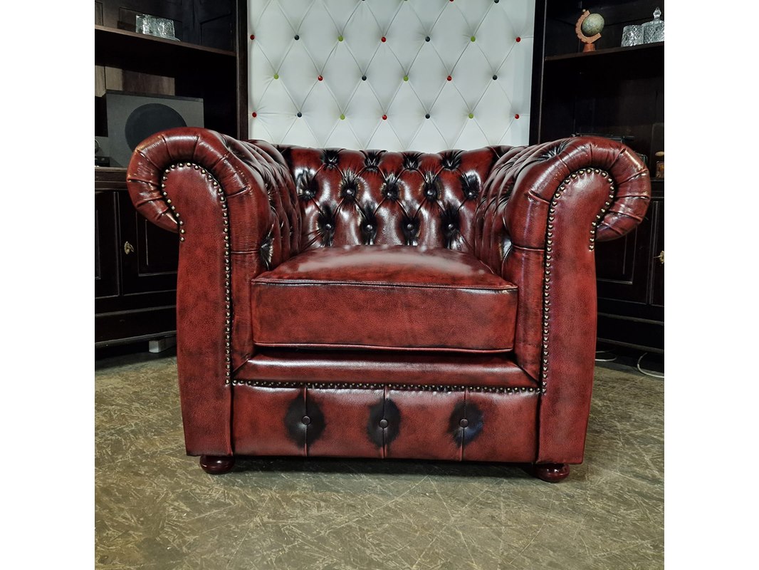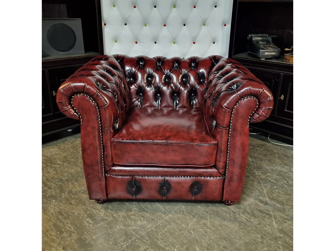 Merk: Chesterfield Product: Fauteuil Kleur: rood Materiaal: leer Afmeting: 79x110x93 Conditie: nieuw Specificaties: Afmetingen: Breedte: 110 cm Hoogte: 79 cm Diepte: 93 cm Zithoogte: 49 cm